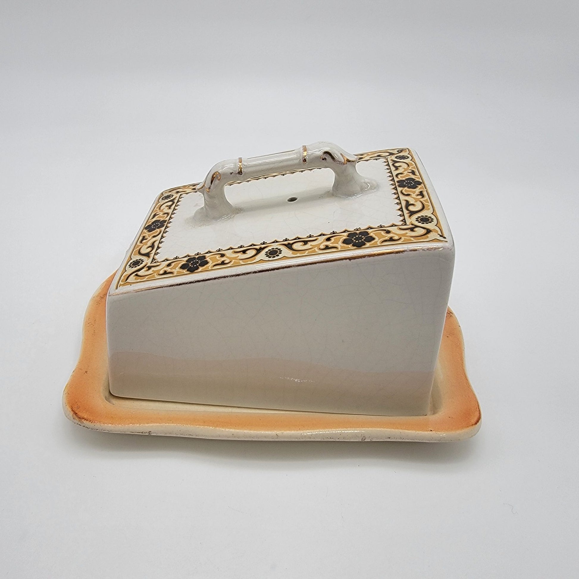 Step back in time with this exquisite antique Noritake Nippon porcelain dish, adorned with intricate moriage gold detailing and a chrysanthemum motif. Crafted for elegance, this lidded dish is not only functional but also a testament to fine craftsmanship. Perfect for showcasing cheese or butter, it brings a touch of timeless beauty to any table.