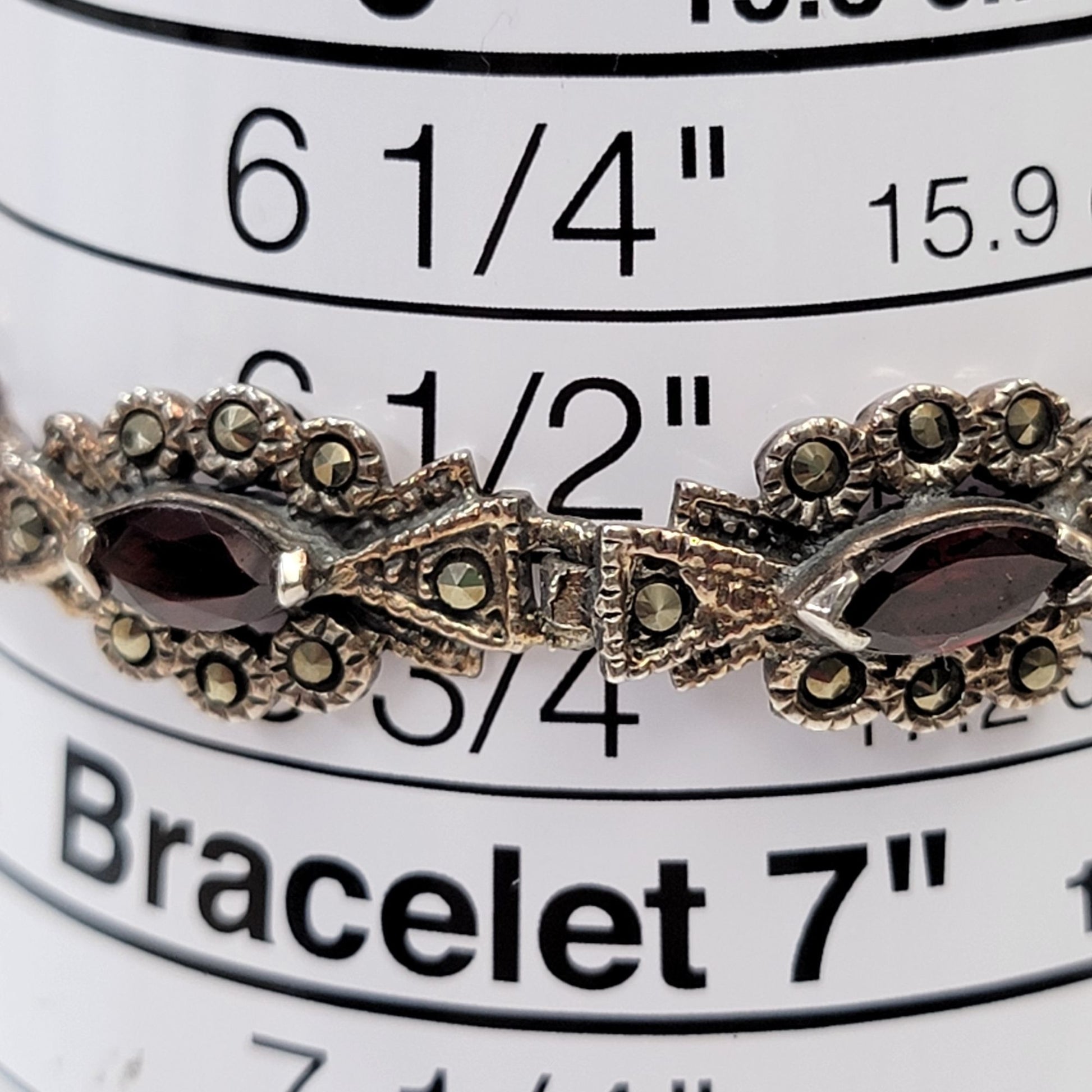Art Deco 925 Sterling Silver Marcasite & Garnet Bracelet Size 6.75