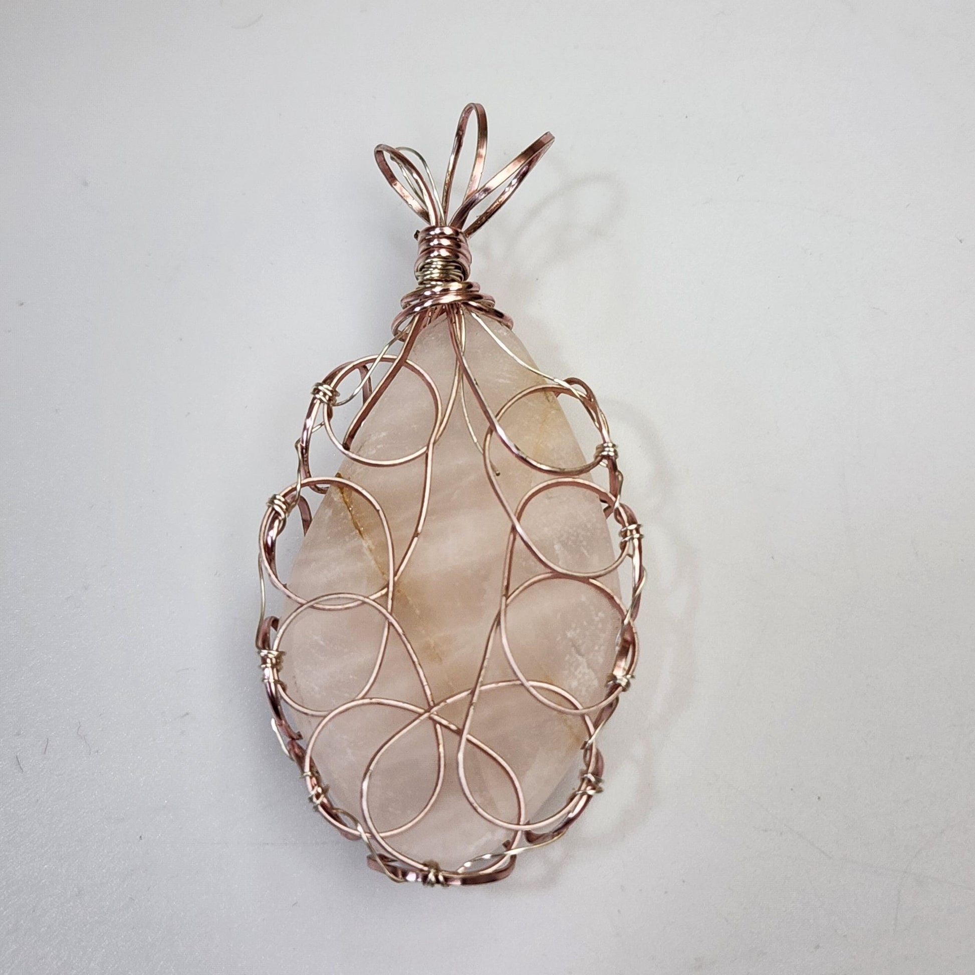 Artisan Copper Wire Wrapped Rose Quartz Pendant