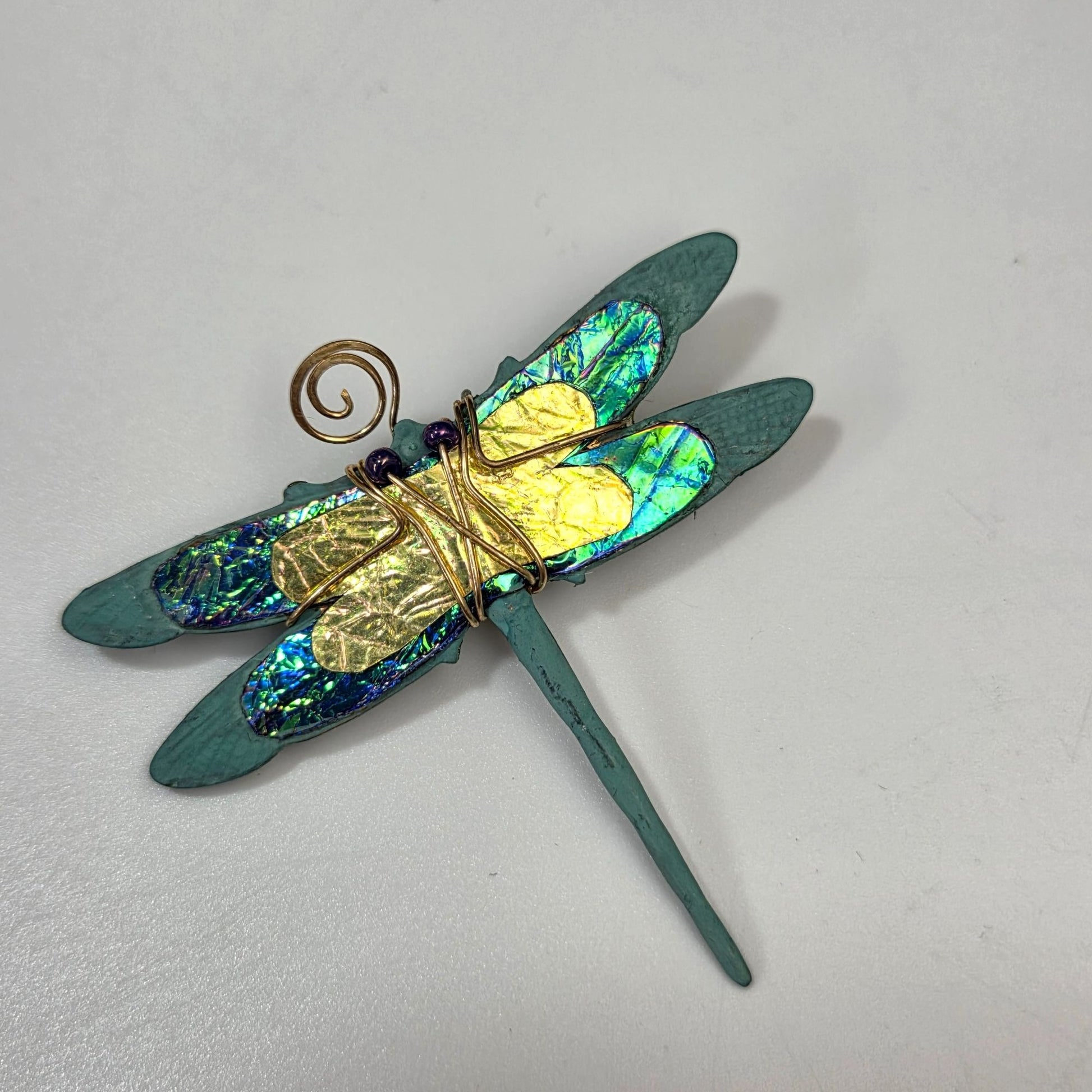 Artisan Dragonfly Brooch With Iridescent Foil Wings