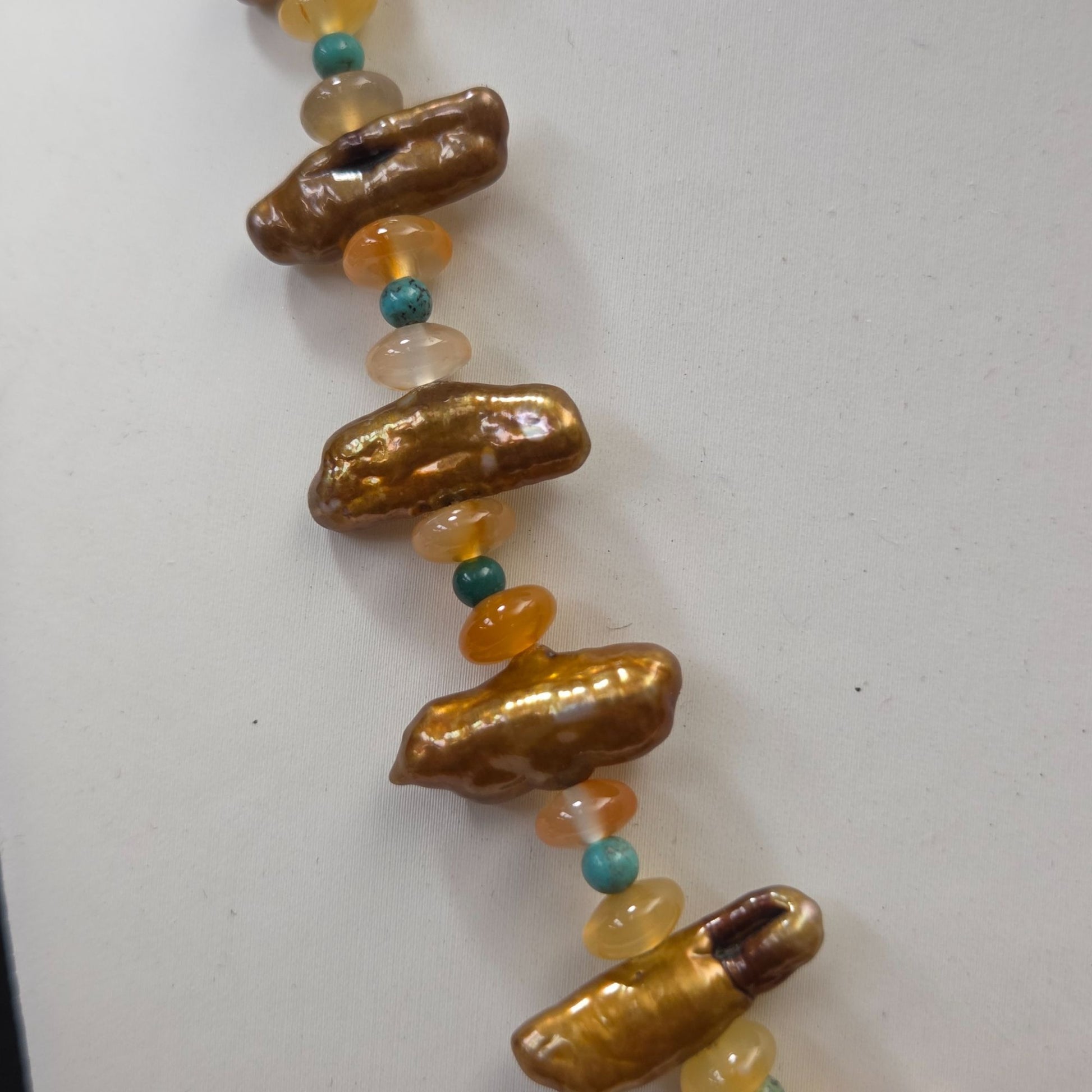 Artisan Gold Biwi Pearls & Gemstones Beaded Necklace