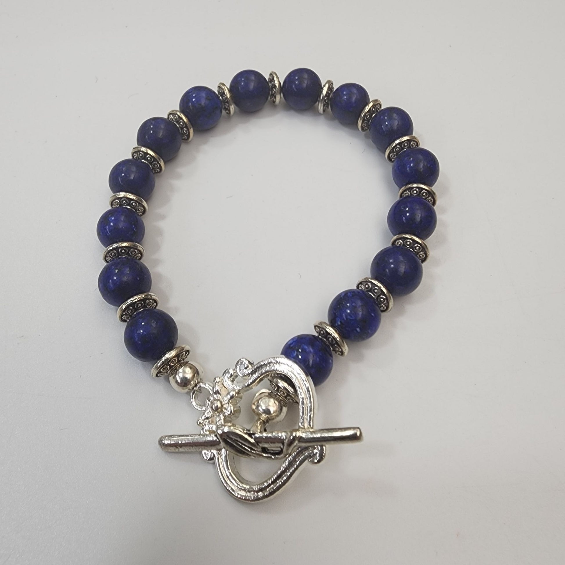 A timeless piece with deep blue Lapis Lazuli beads, each telling a story of the earth's beauty. The silver accents add sophistication, and the toggle clasp ensures secure wear. A symbol of elegance and thoughtful craftsmanship, this bracelet is a charming addition to elevate personal style.
