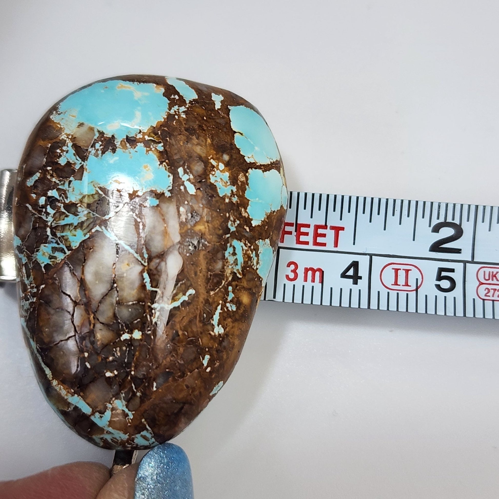 Artisan Royston Turquoise Gemstone Cabochon Pendant Multi-Toned Brown & Blue