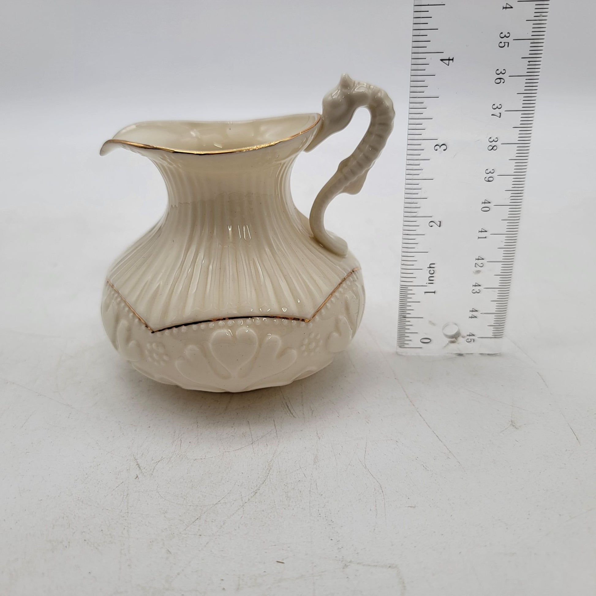 • Creamer features an ornate seahorse handle