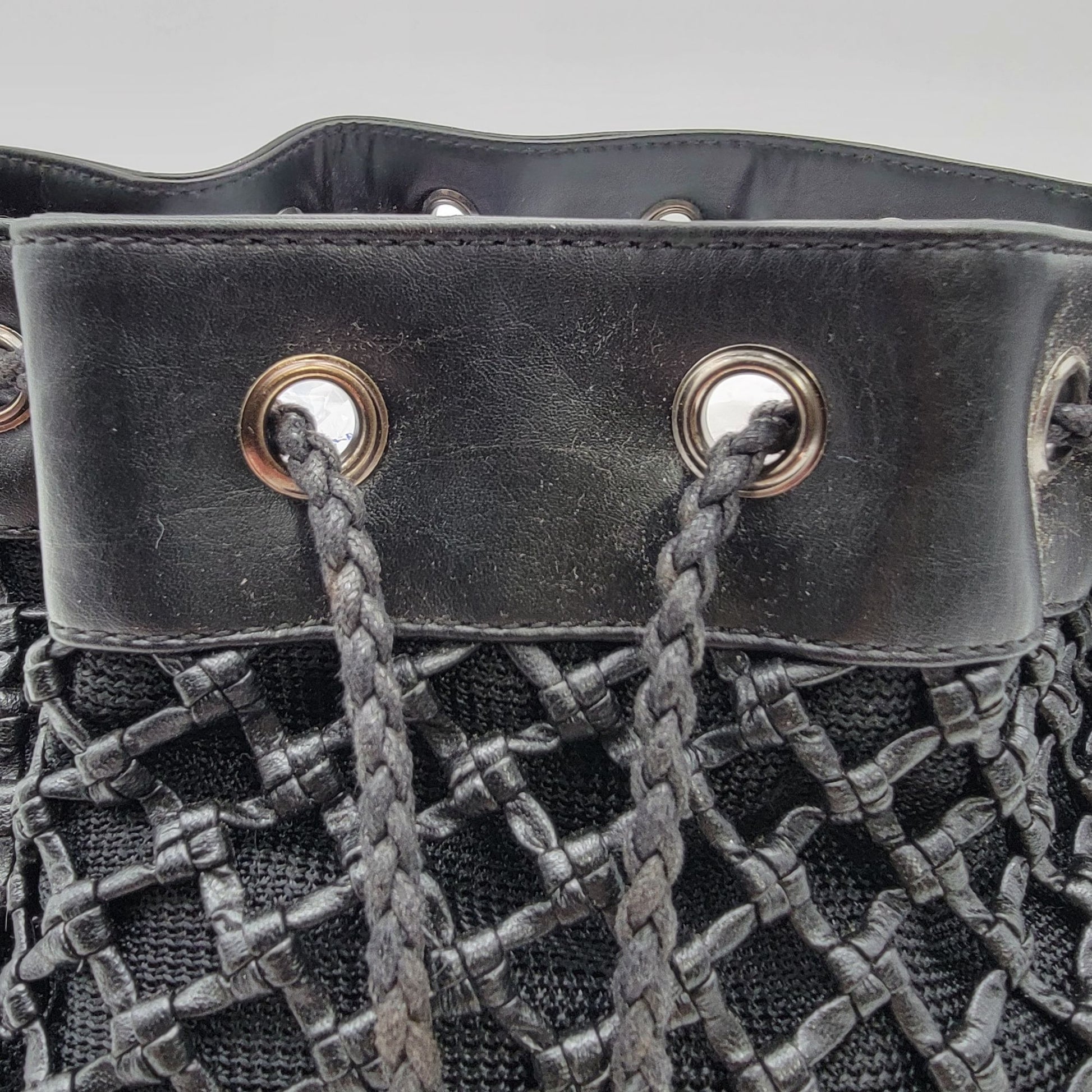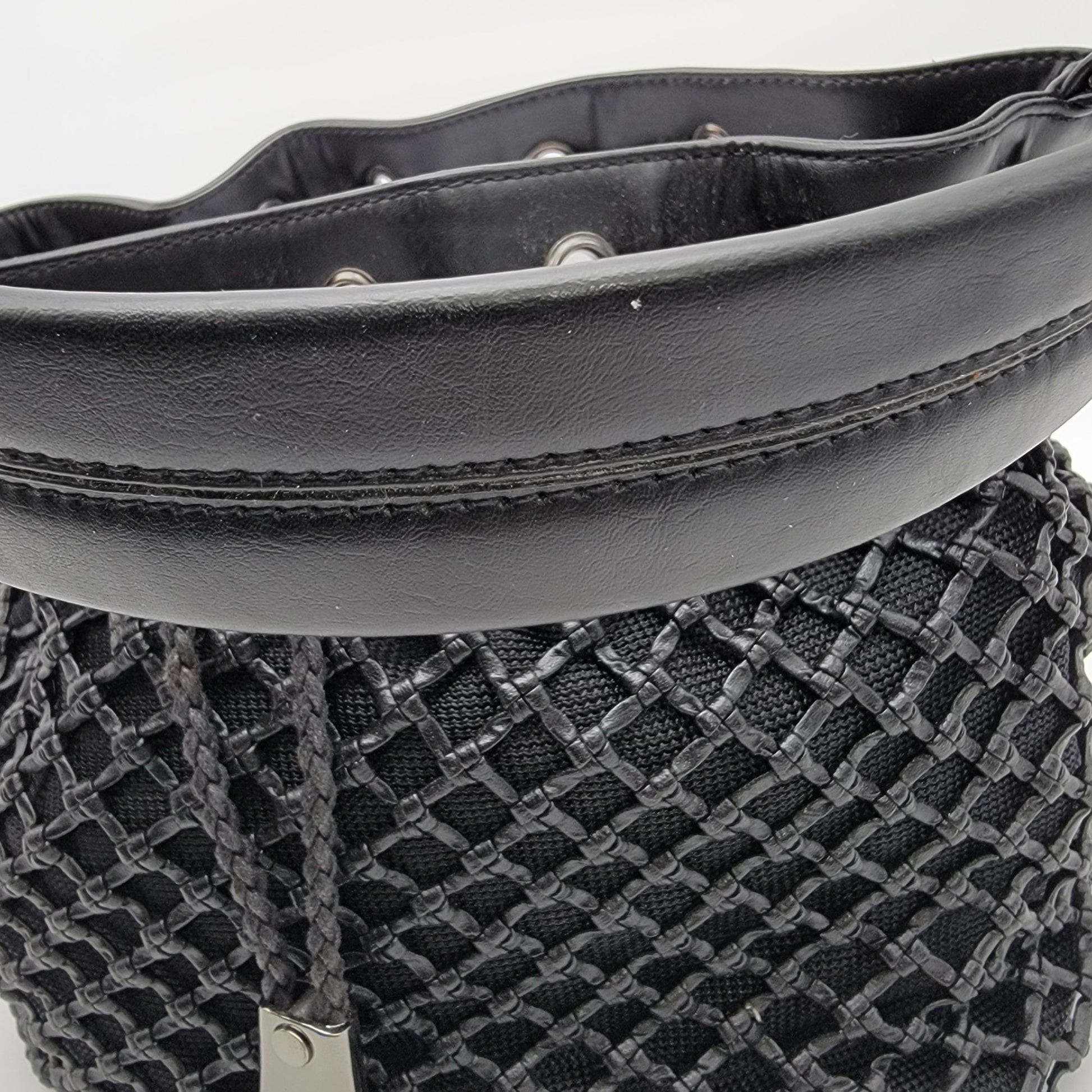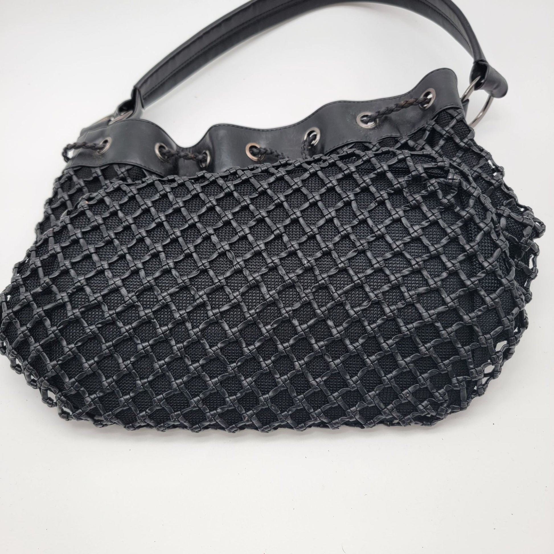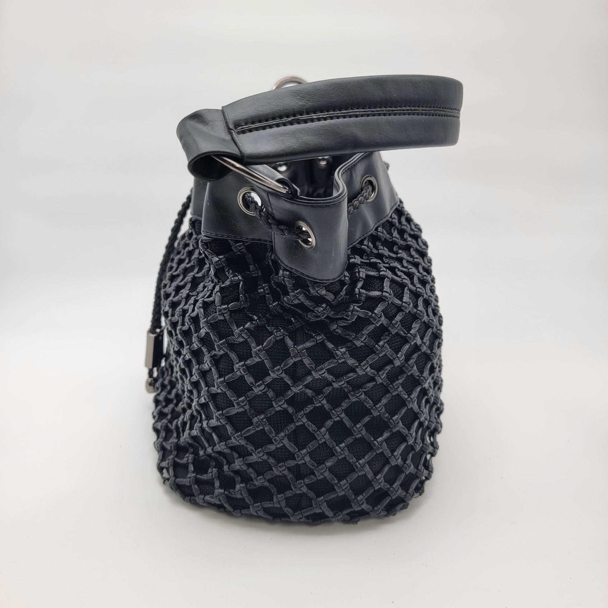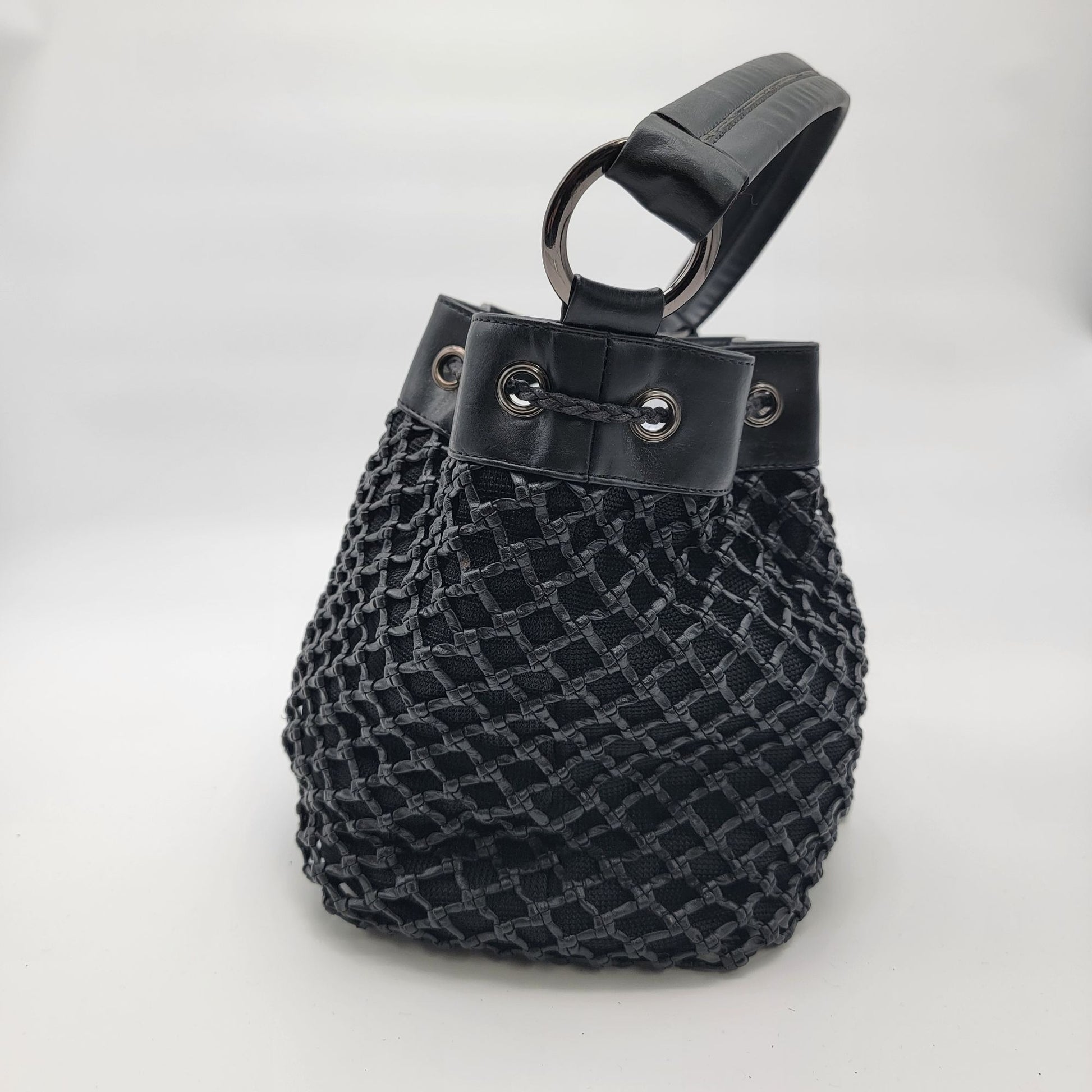 Black Basket Weave Mesh Bucket Shoulder Bag Purse
