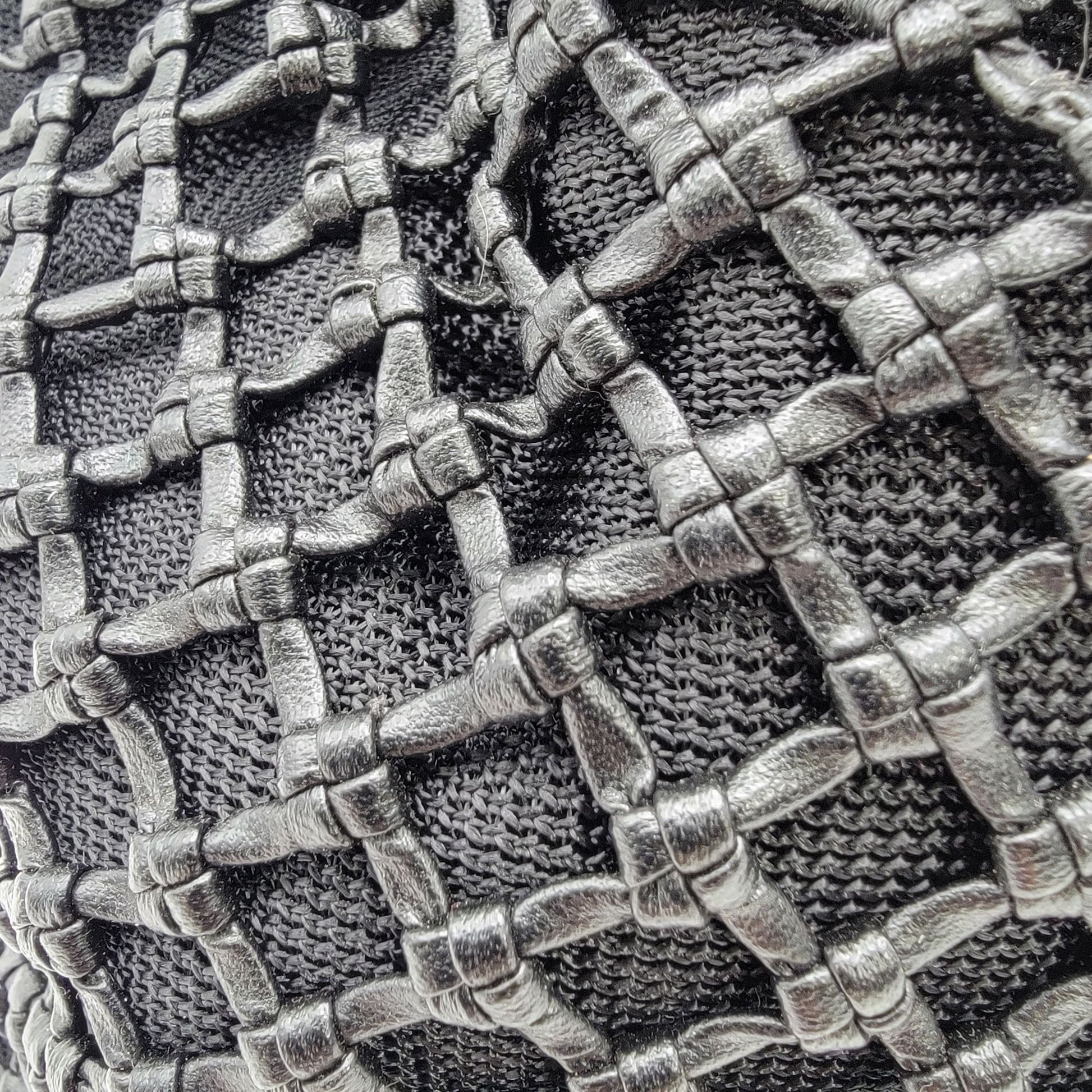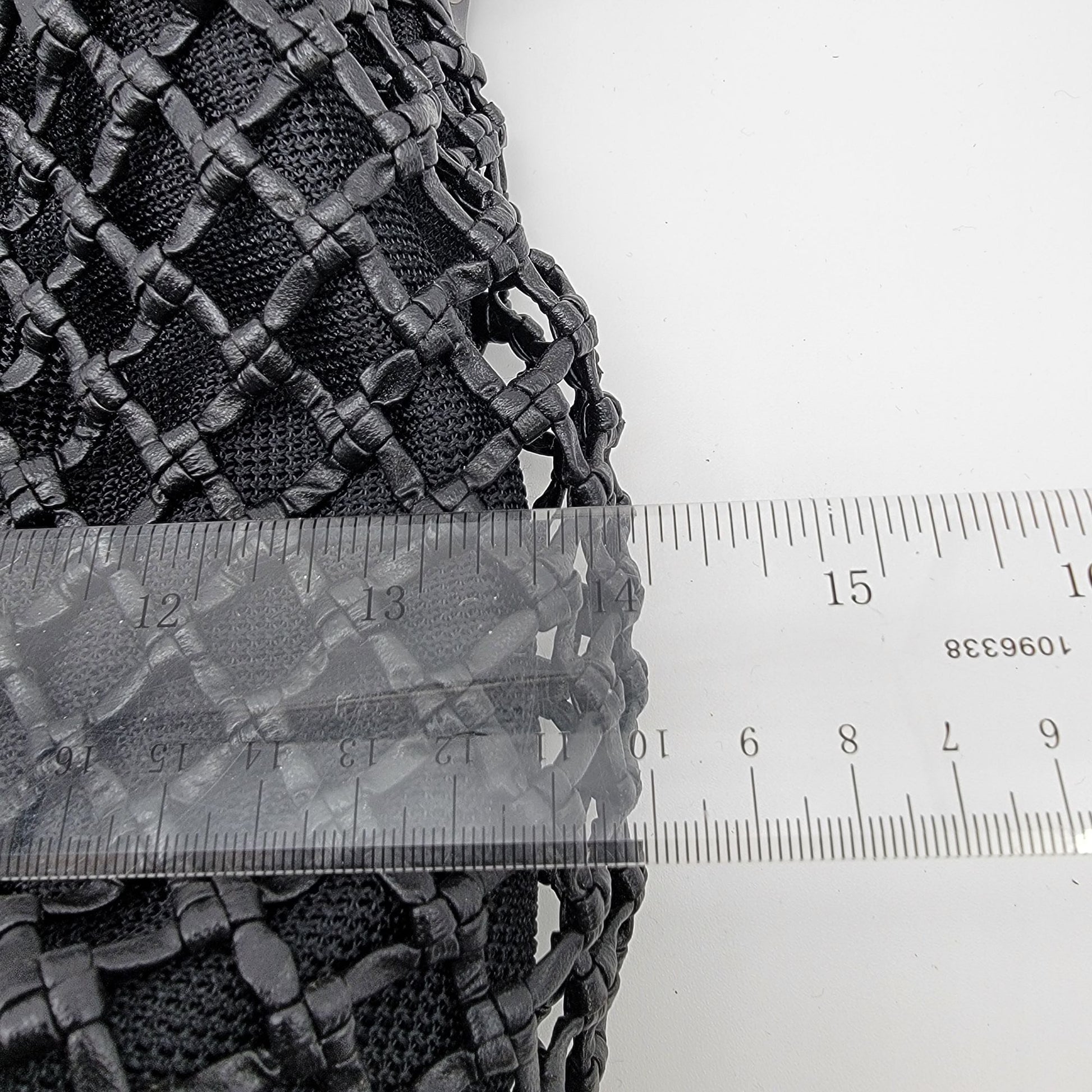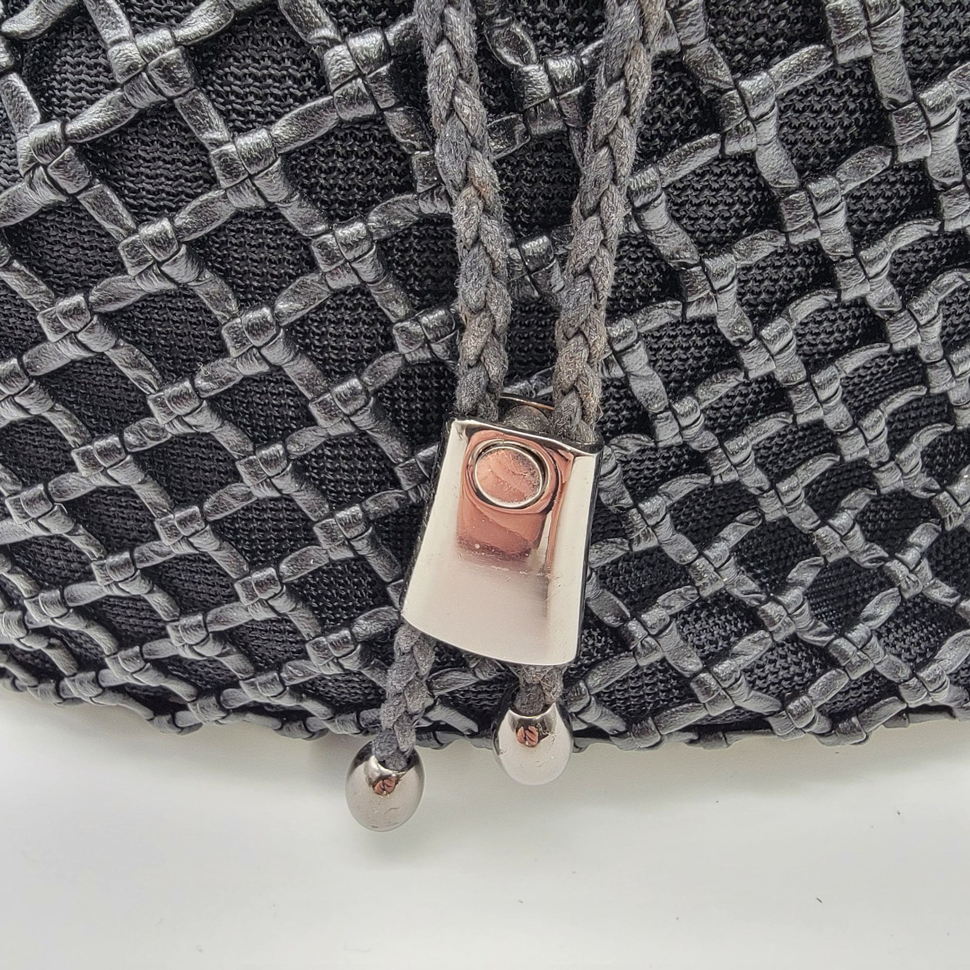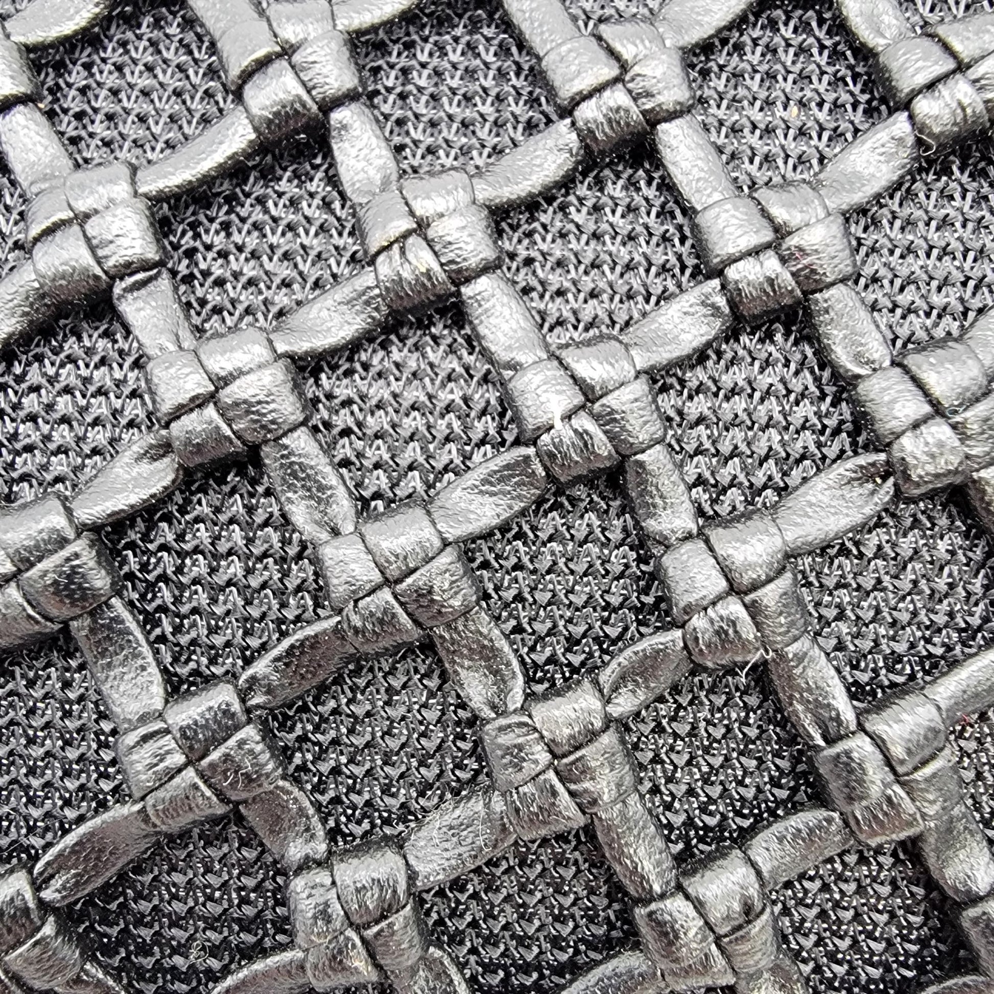 This bag offers a sophisticated design with its basket weave mesh exterior and durable black construction. Practical and stylish for daily use or formal settings.