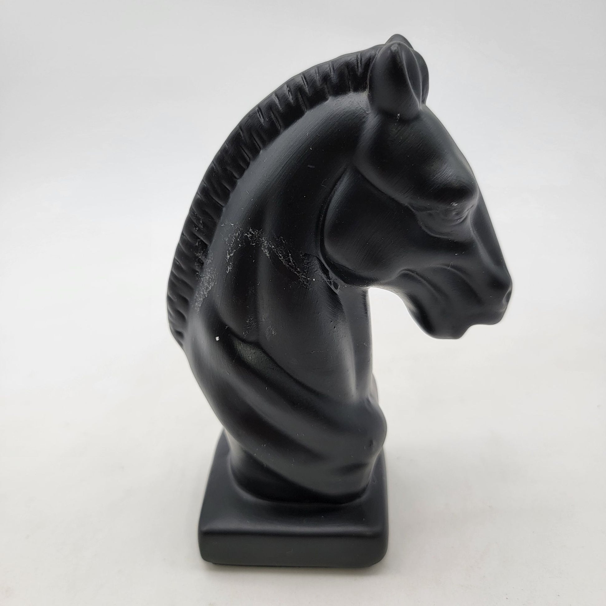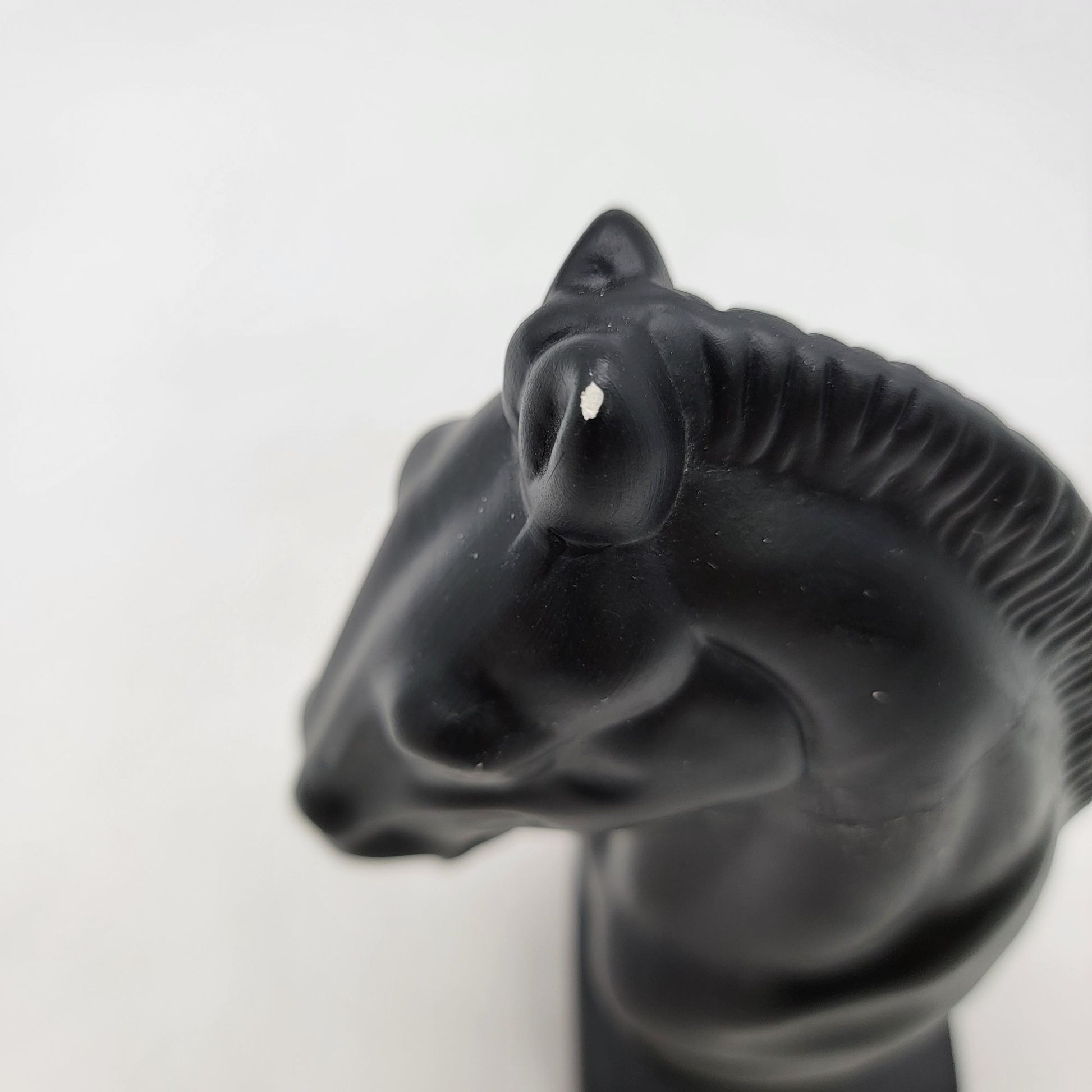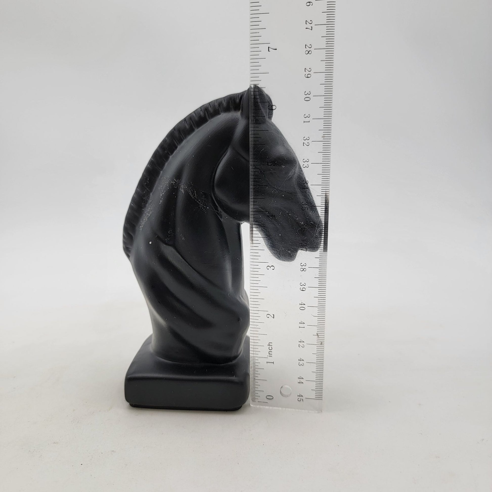 This black horse head statue offers a sophisticated touch to any table decor. Its design resembles a chess piece, adding a strategic and elegant accent to your space.