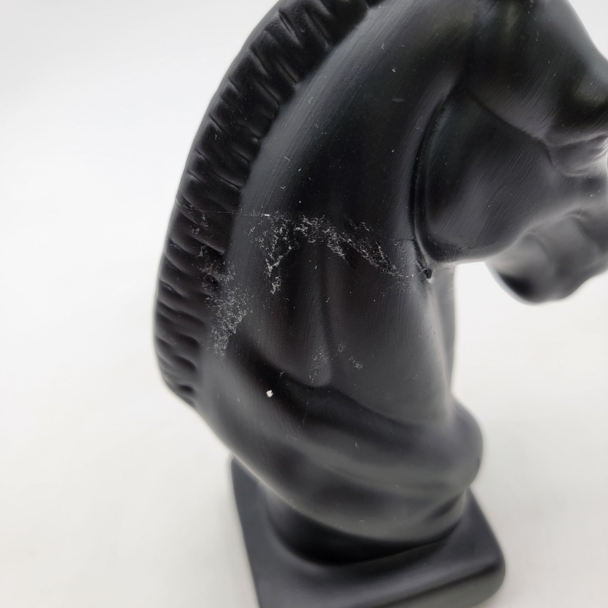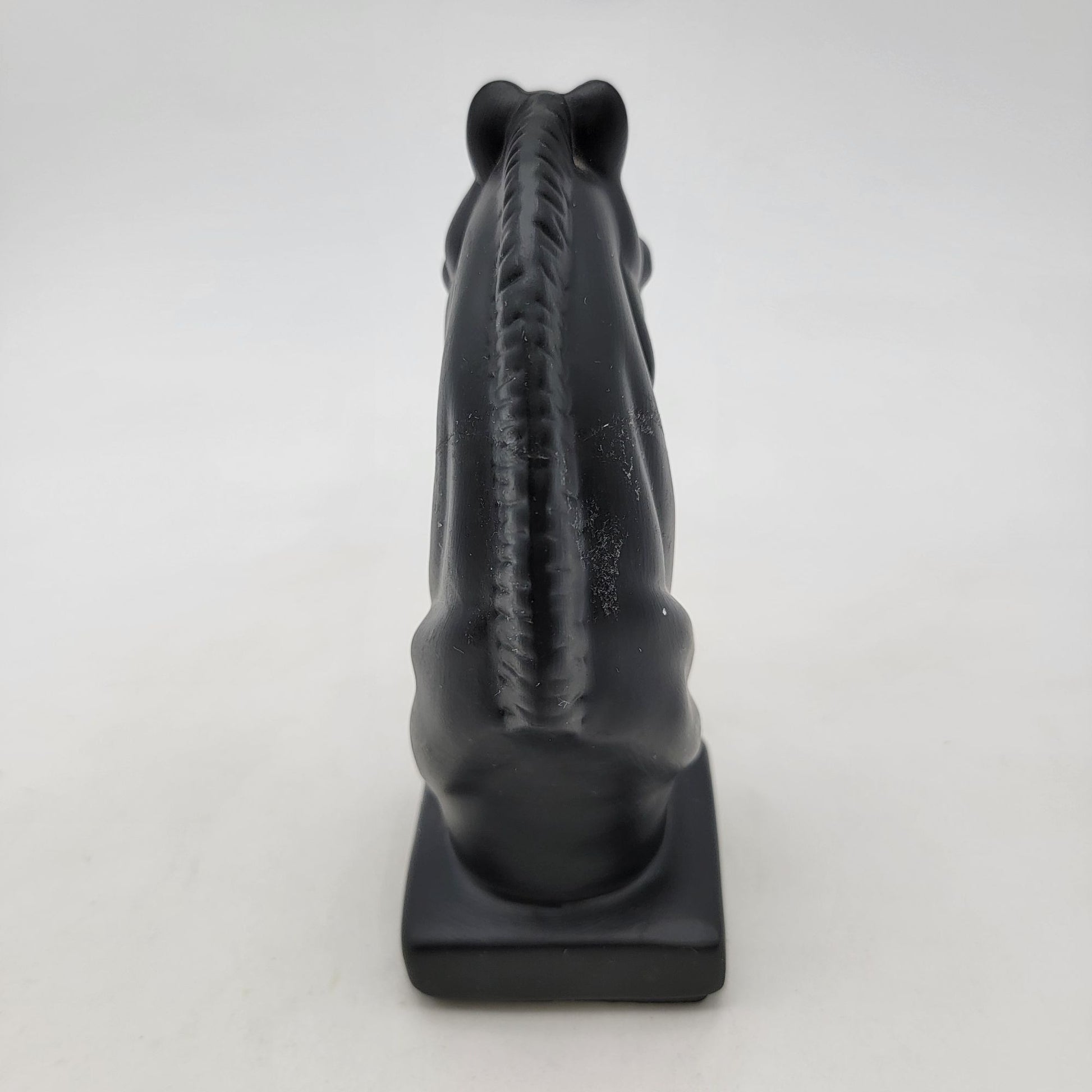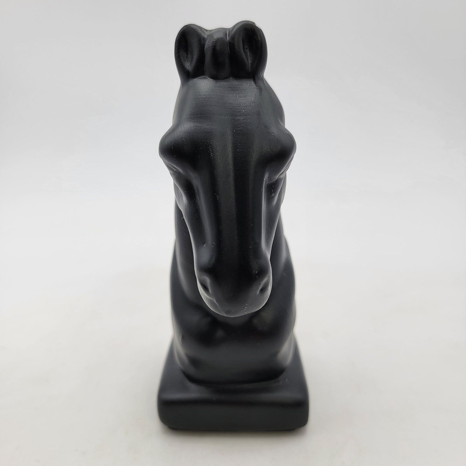This black horse head statue offers a sophisticated touch to any table decor. Its design resembles a chess piece, adding a strategic and elegant accent to your space.
