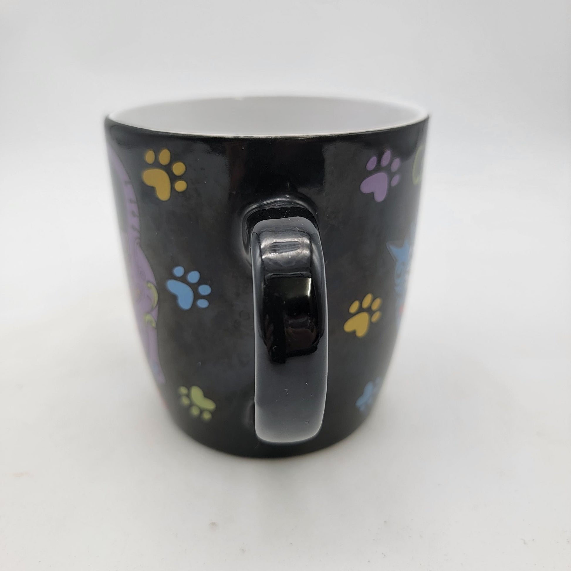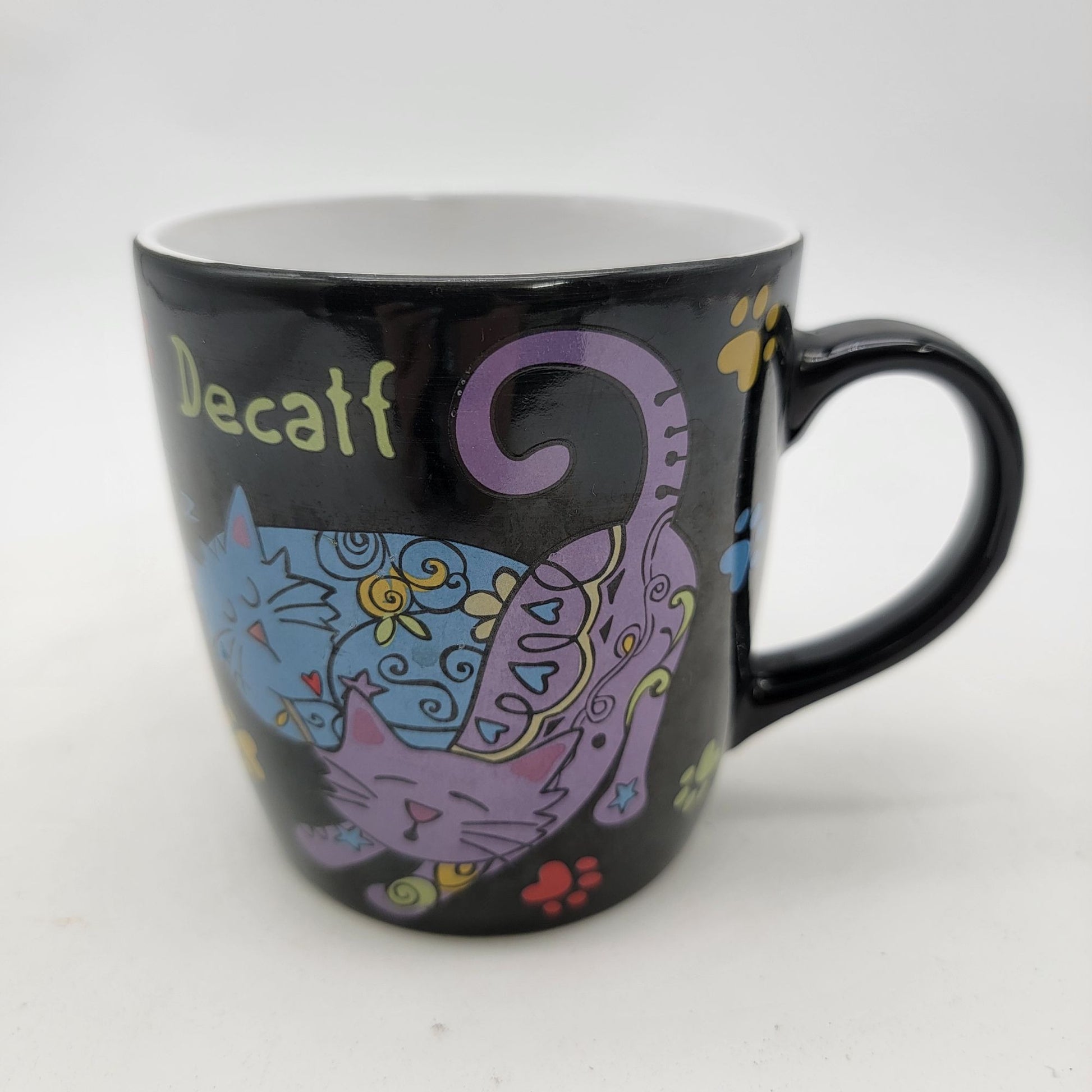 "Catffeinated/Decatf" Cat Paw Prints Ceramic Mug