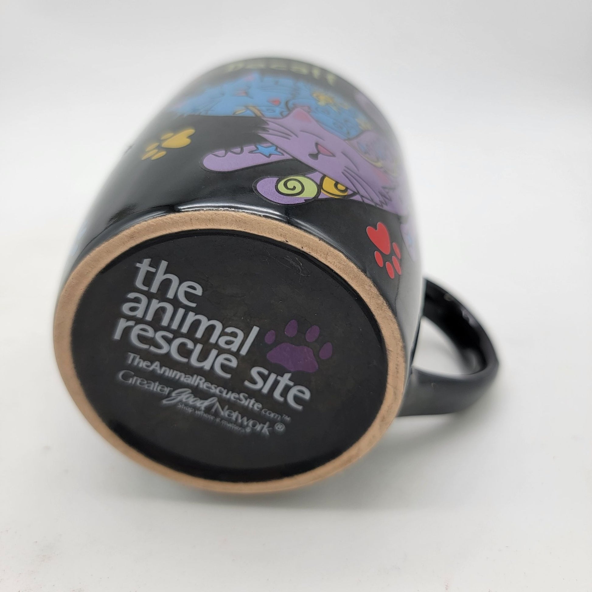 This mug is the purr-fect way to express your dual personality or caffeine dependency. One side says "Catffeinated" with bright, peppy kitties, while the other says "Decatf" with more relaxed cats. Enjoy a little humor with your brew.