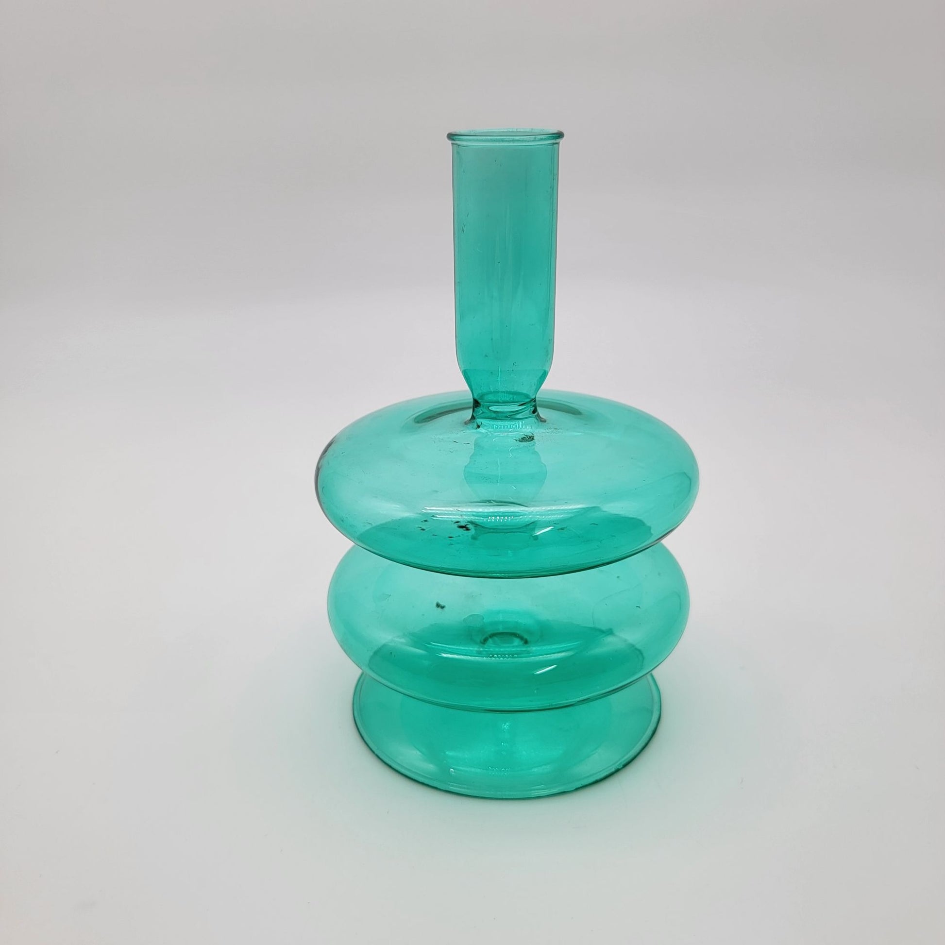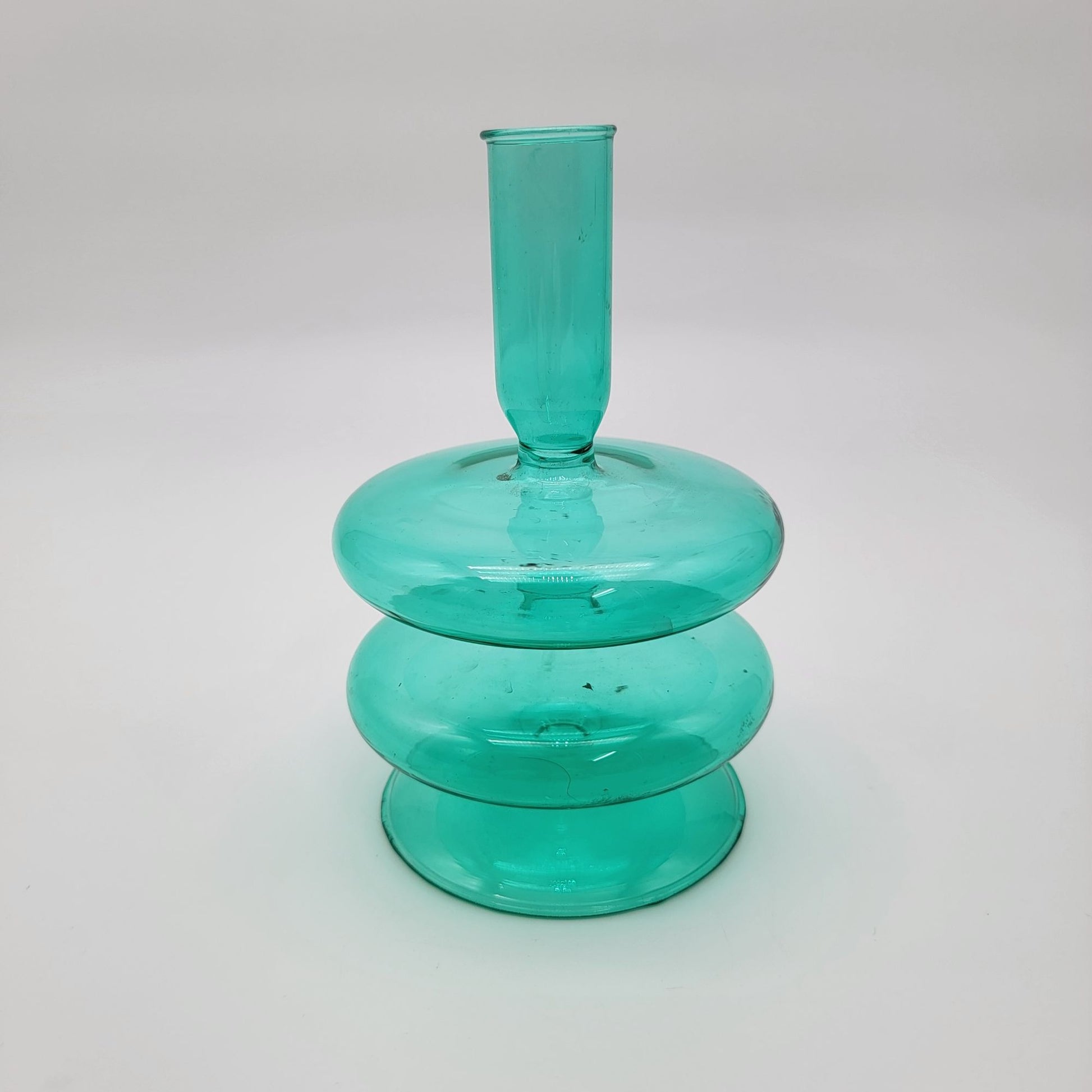 A delicate glass vessel emerges like a translucent sea creature, its undulating forms capturing the ethereal essence of aquatic beauty. Crafted in a mesmerizing teal hue, this piece whispers stories of oceanic depths and artistic imagination.