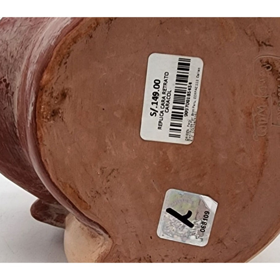 Chimu-Inspired Peruvian Pottery Stirrup Vessel Head Sculpture