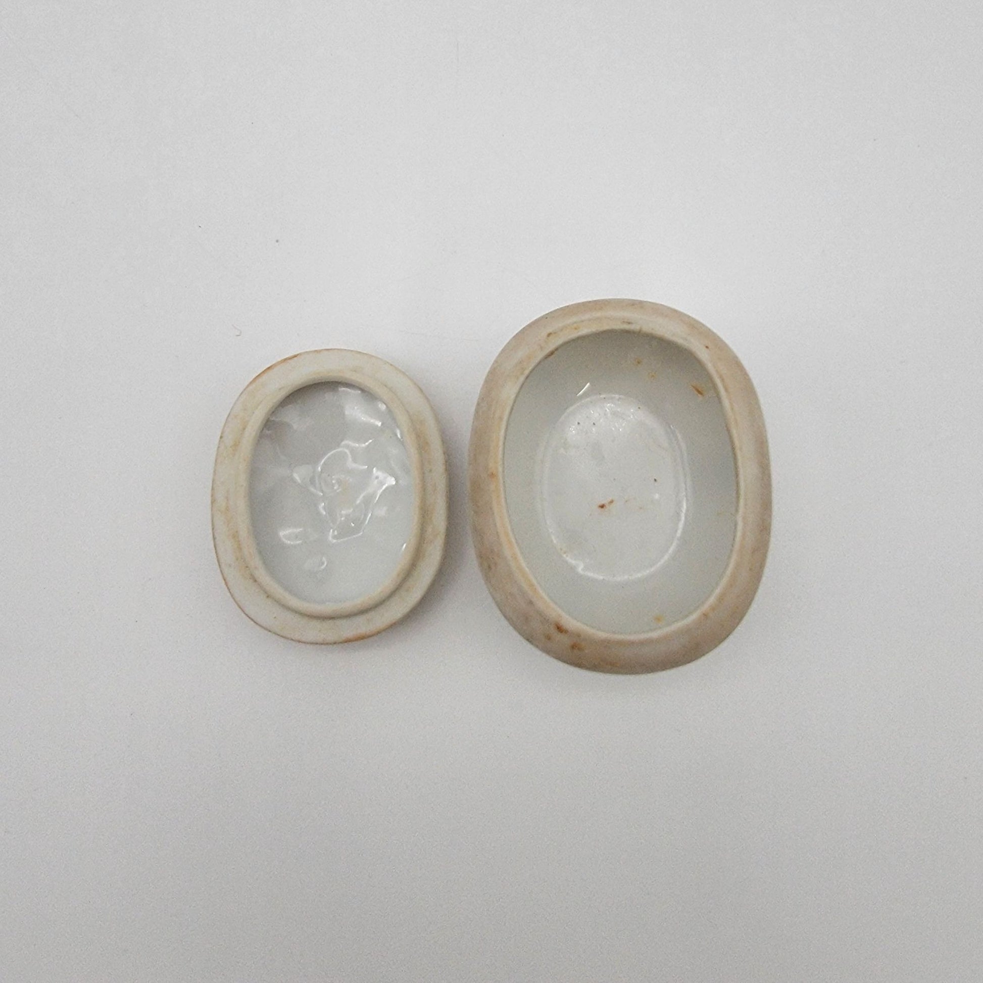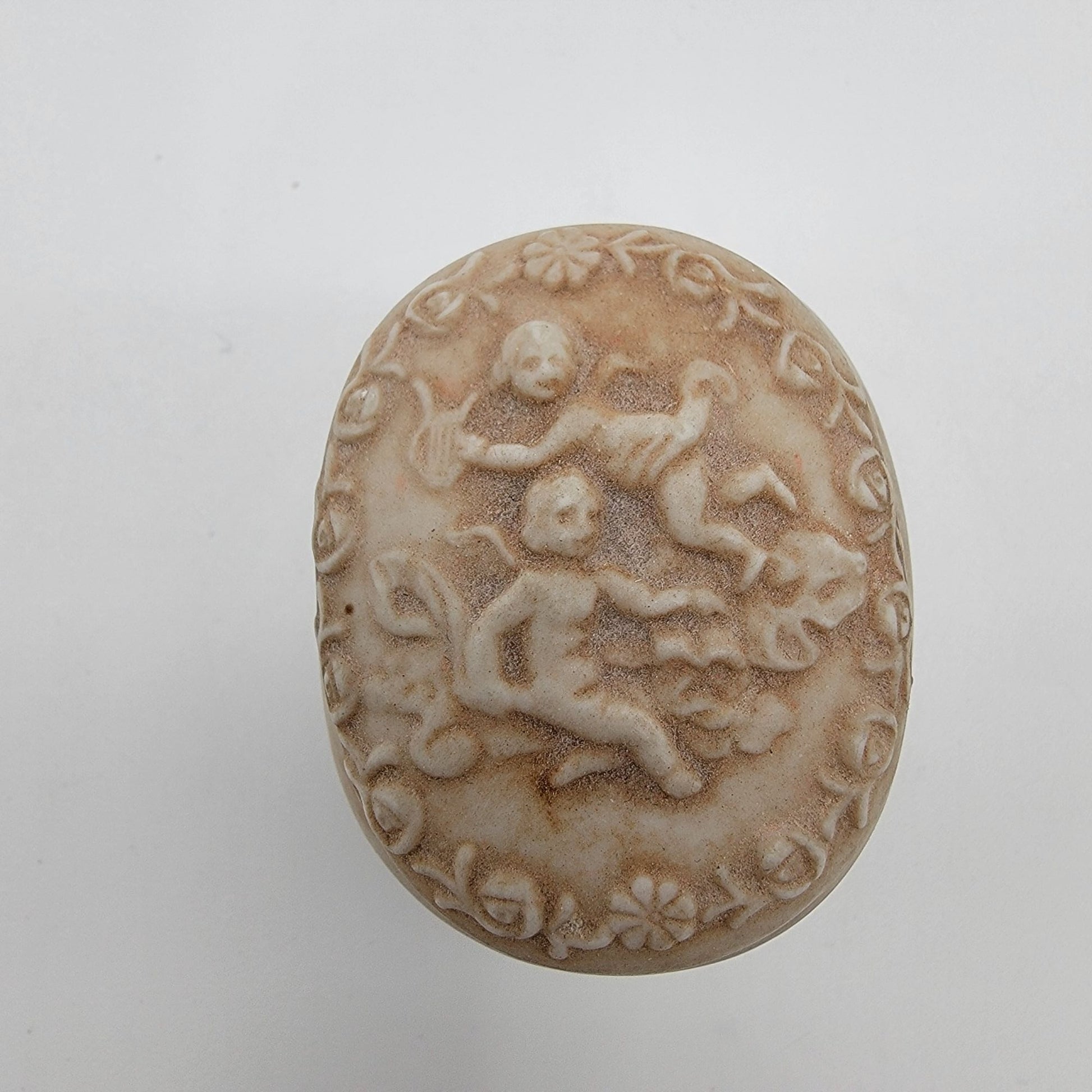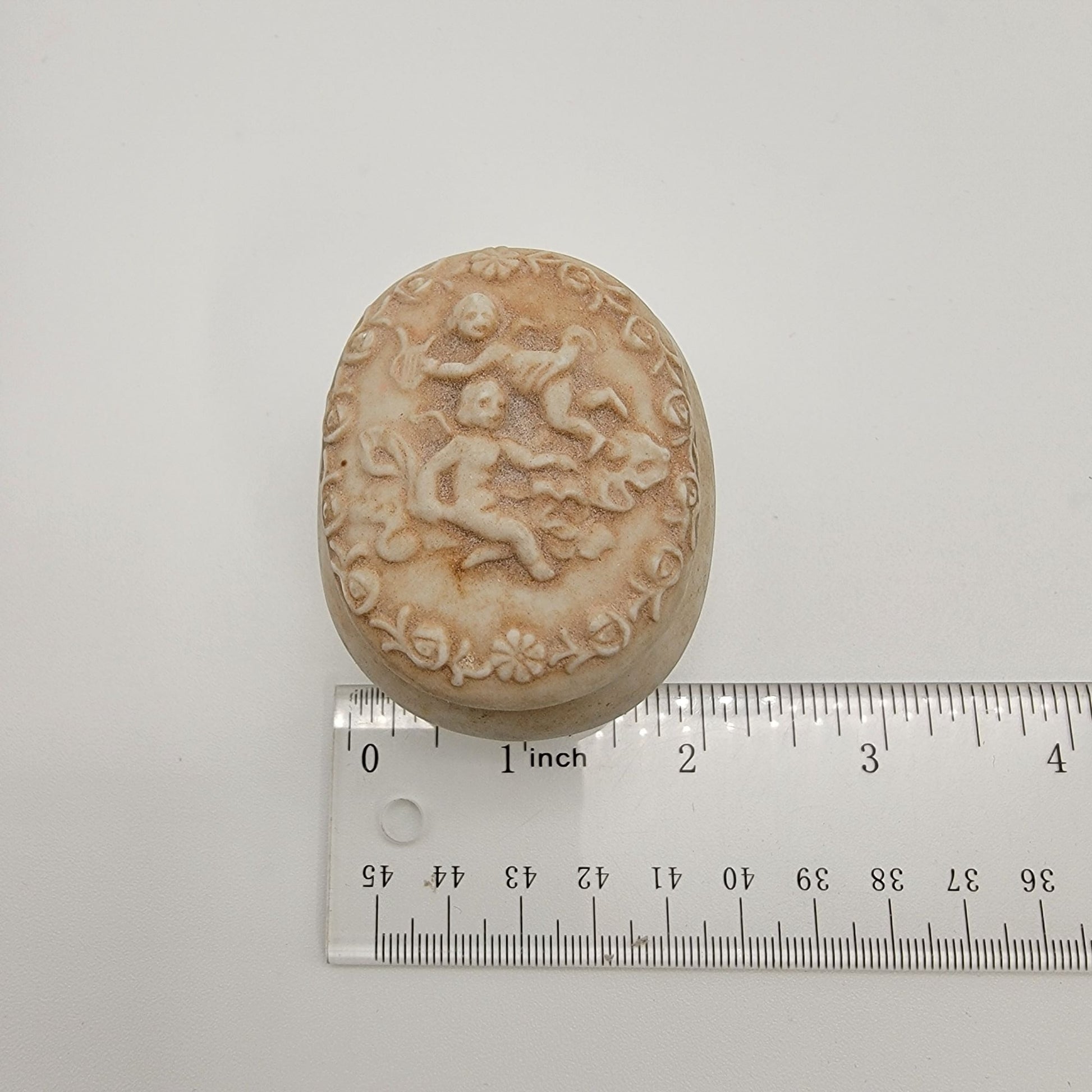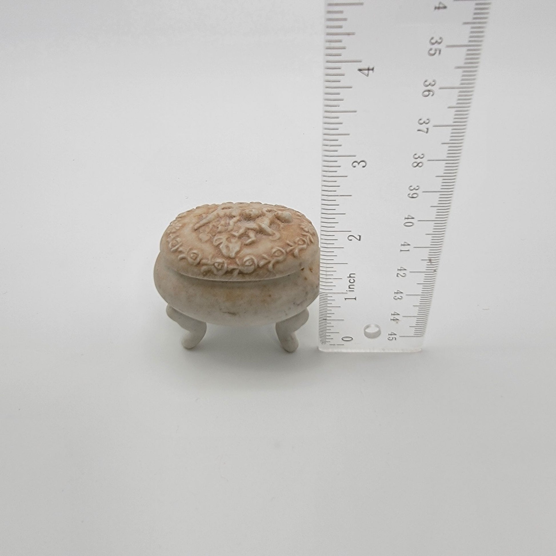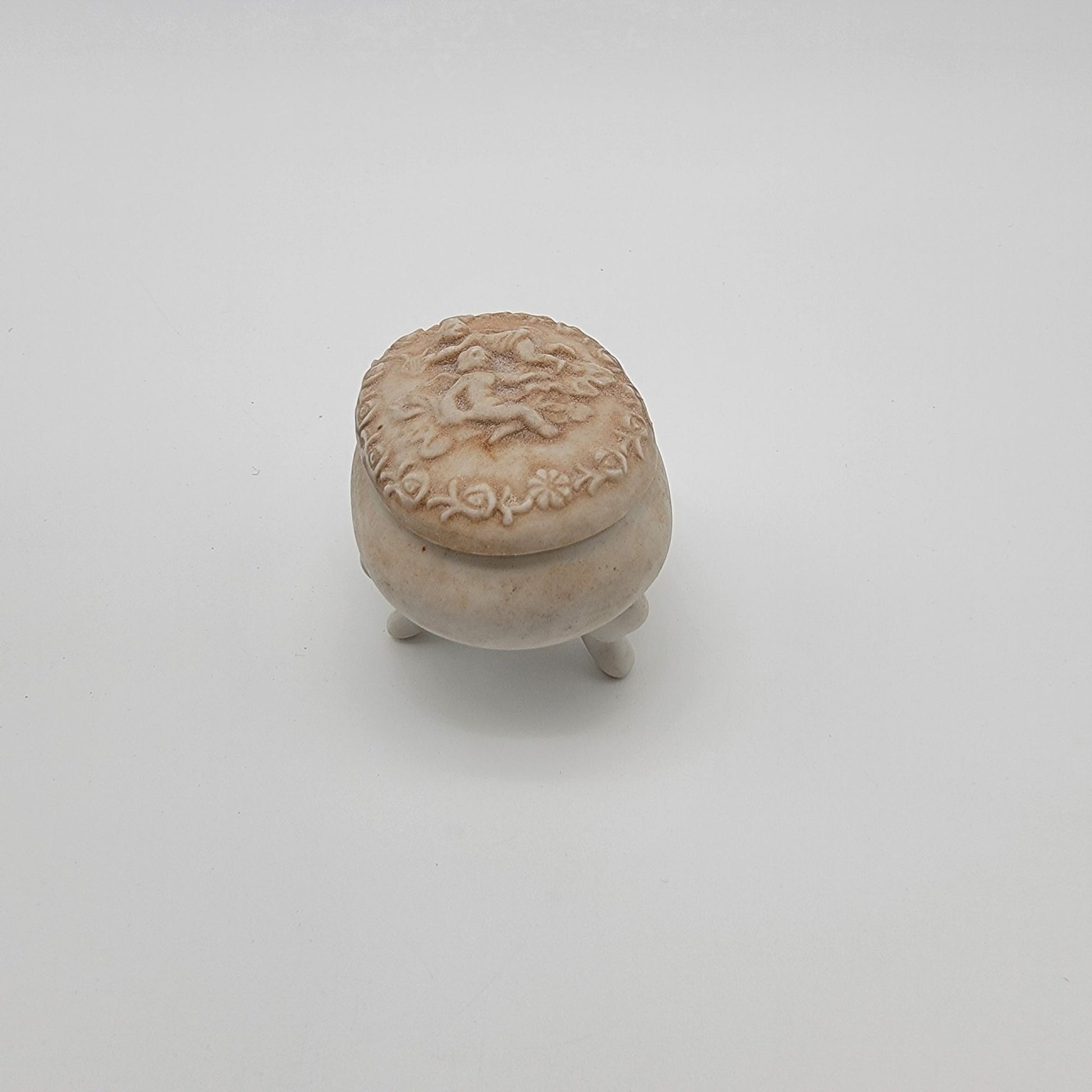Dainty Lefton Footed Bisque Porcelain Trinket Box Cherub Motif