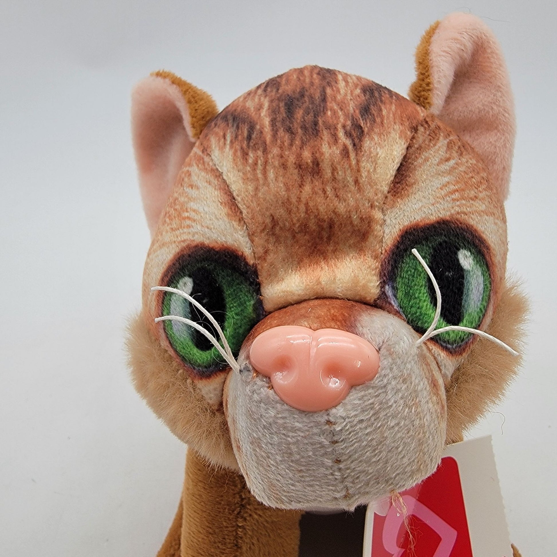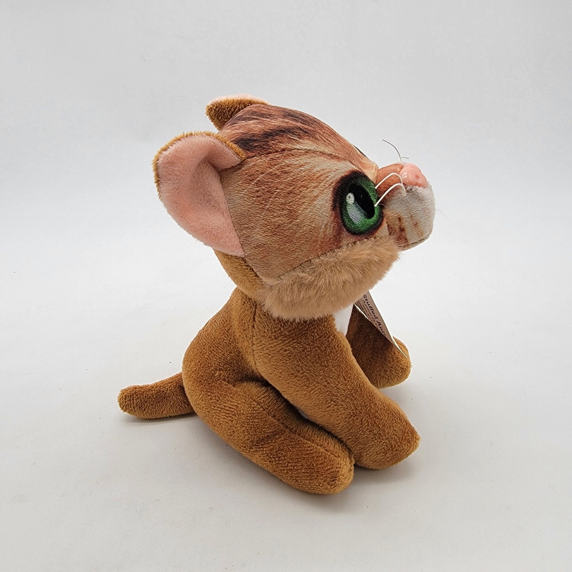 This plush toy features a charming design with vibrant green eyes and soft material. Ideal for collectors or as a gift for cat enthusiasts.