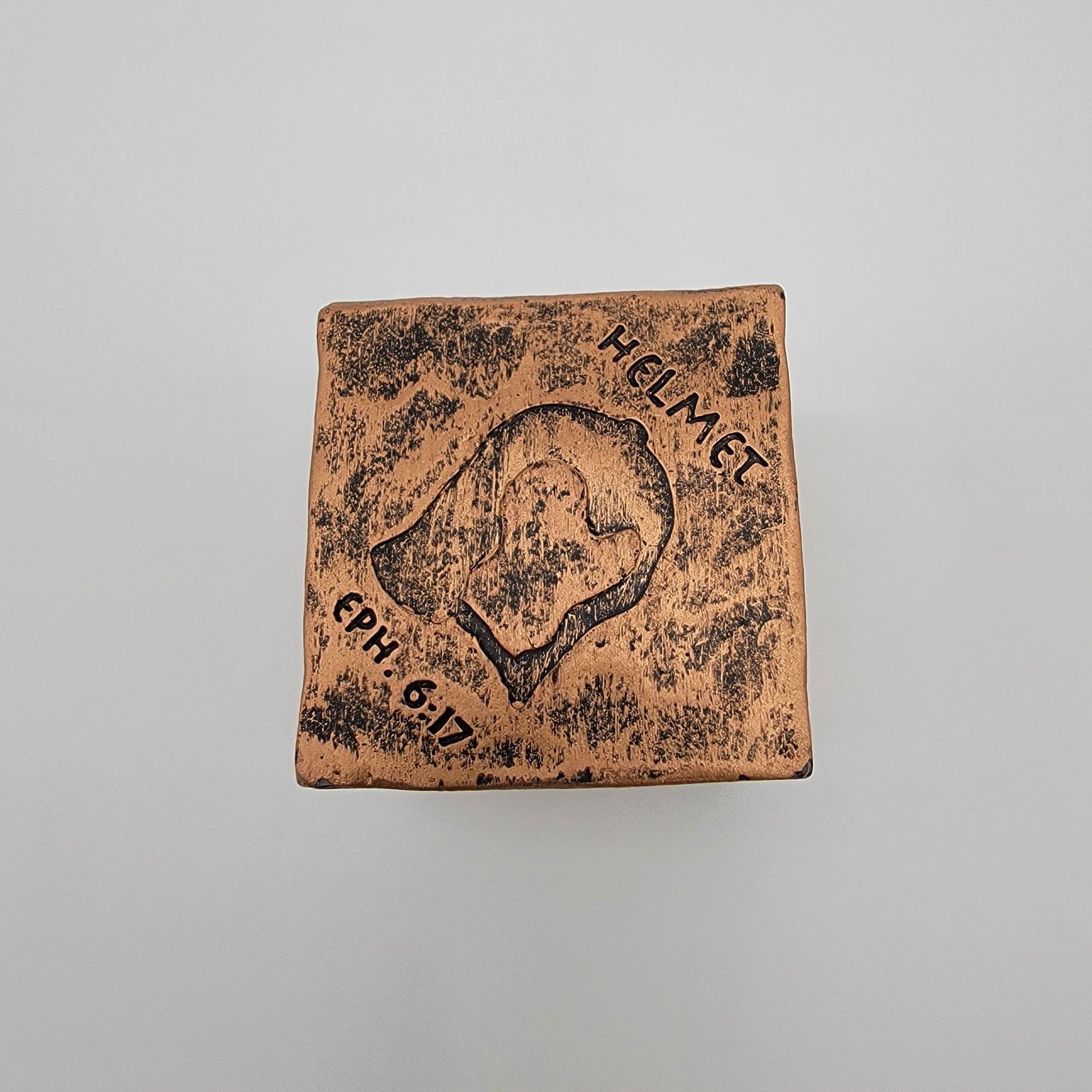 This compact 2-inch cube features the symbolic armor of God with detailed engravings of Ephesians 6 verses, ideal for decor or spiritual reflection.