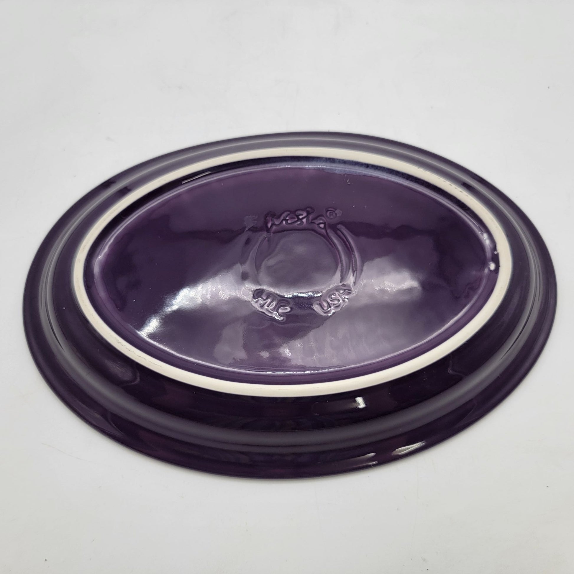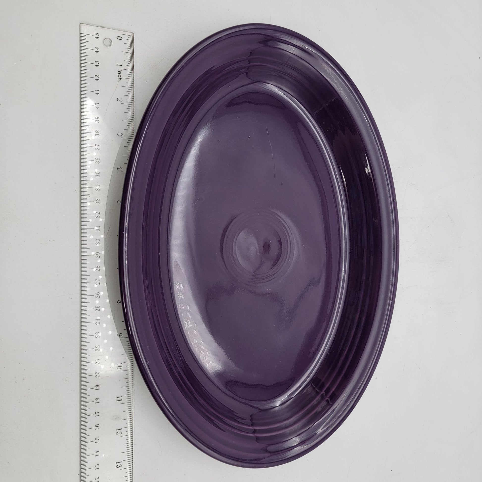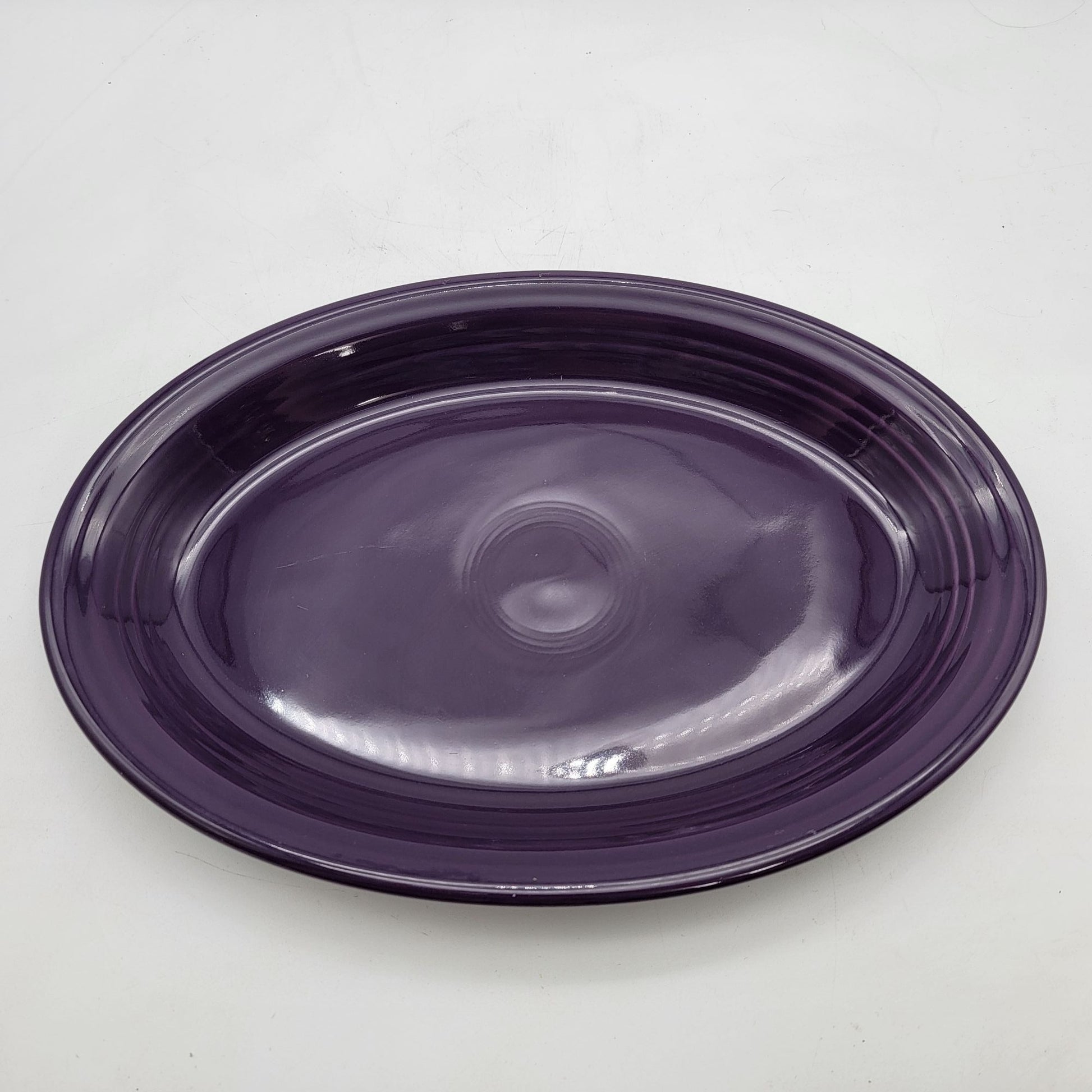 This vintage Fiesta Ware serving platter exudes timeless charm with its purple glaze and classic design. A collectible piece, ideal for displaying or functional use.