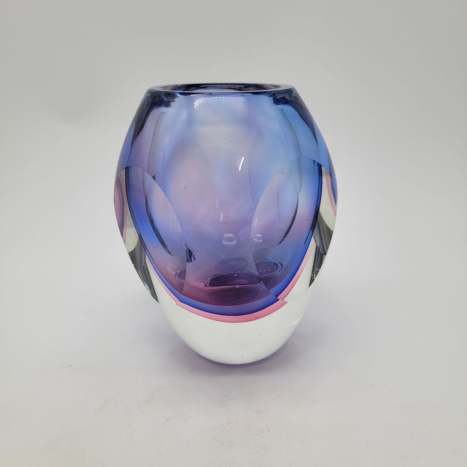 Flavio Poli Seguso Murano Sommerso Faceted Art Glass Vase Purple & Pink - As Found