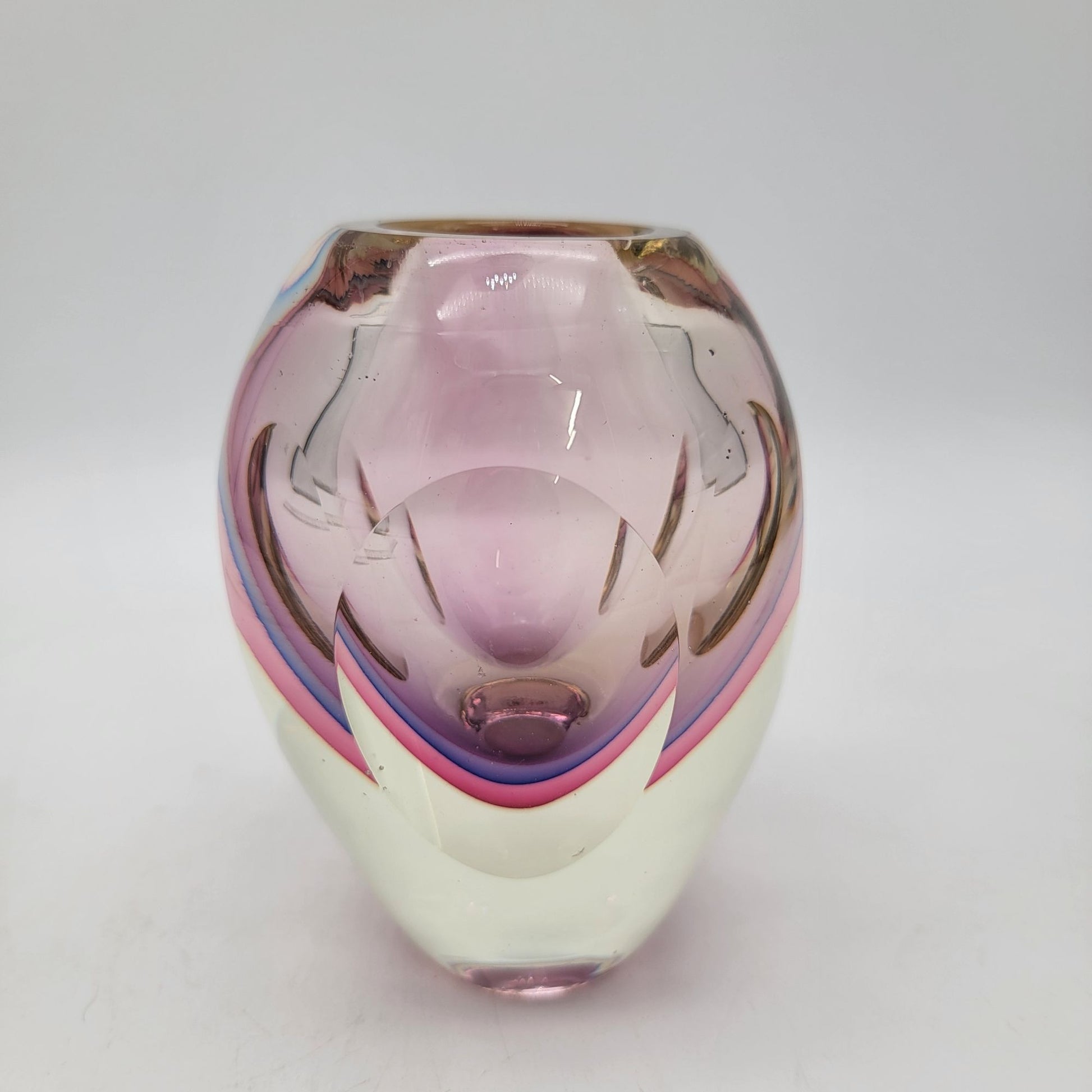 Flavio Poli Sommerso Murano Faceted Glass Vase Pink & Clear Mid-Century Modern