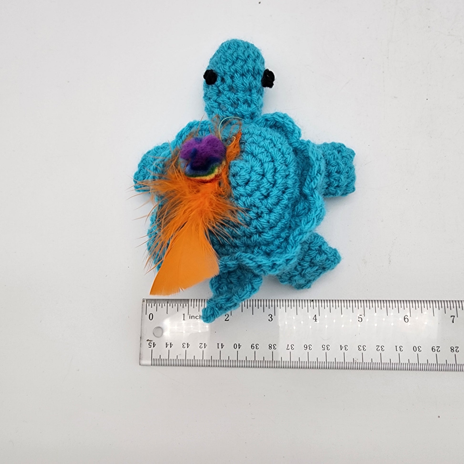 FOR CARRIE S - Hand Crocheted Turtle Blue Cat Toy