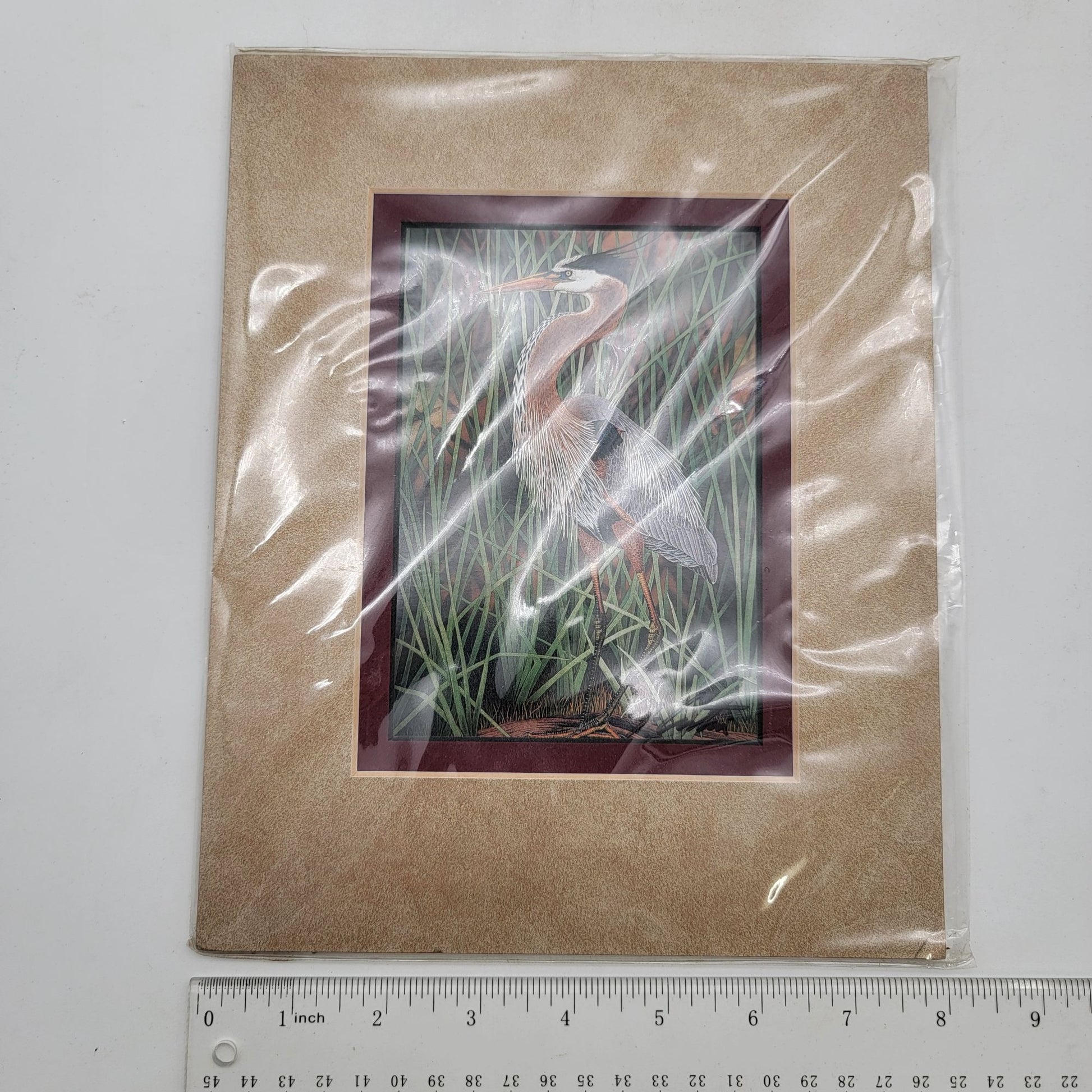 Standing close to 4 feet high, this is the most commonly seen heron in North America. Included is a brief description about this bird on the back of the lithograph.