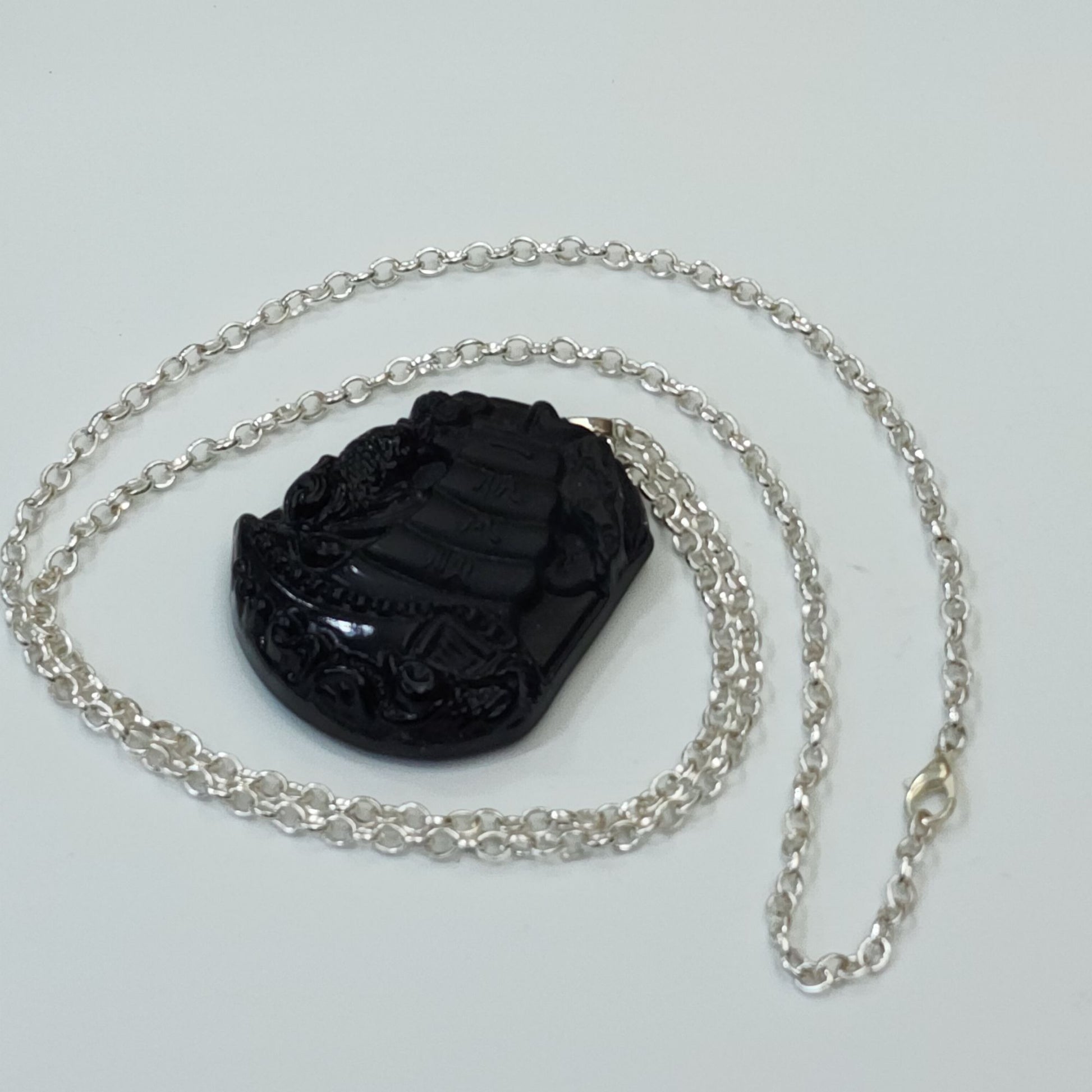 This intricately carved obsidian pendant tells a story of smooth sailing, symbolizing hope and prosperity. Adorned with an elegant 30-inch silver-tone chain, it’s a wearable piece of art with cultural depth and timeless elegance.