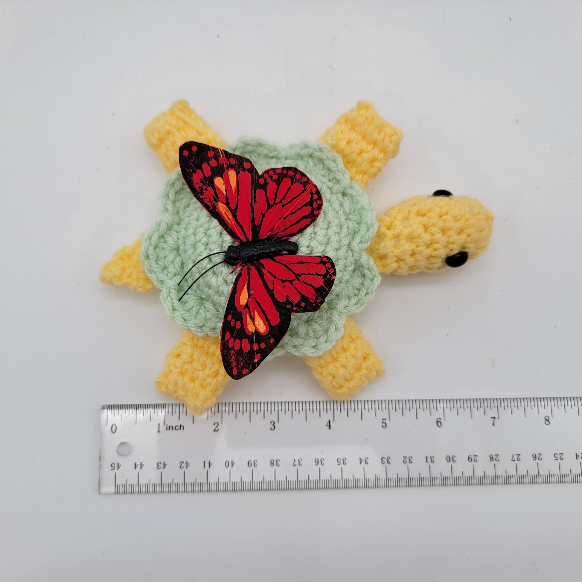 Hand Crocheted Turtle Yellow and Green with Butterfly