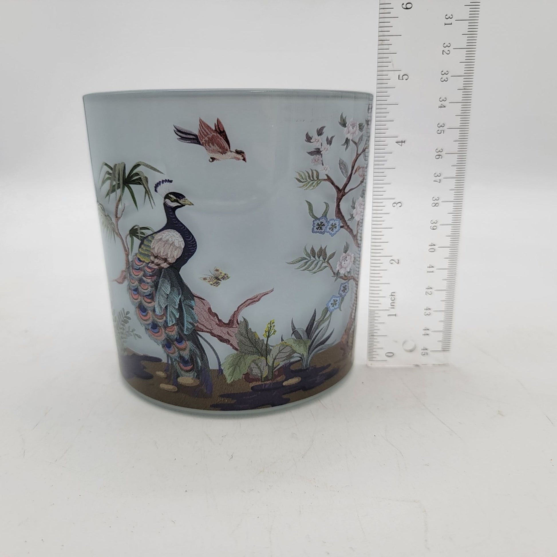 Hand-Painted Glass Candle Holder With Peacock Heron Birds