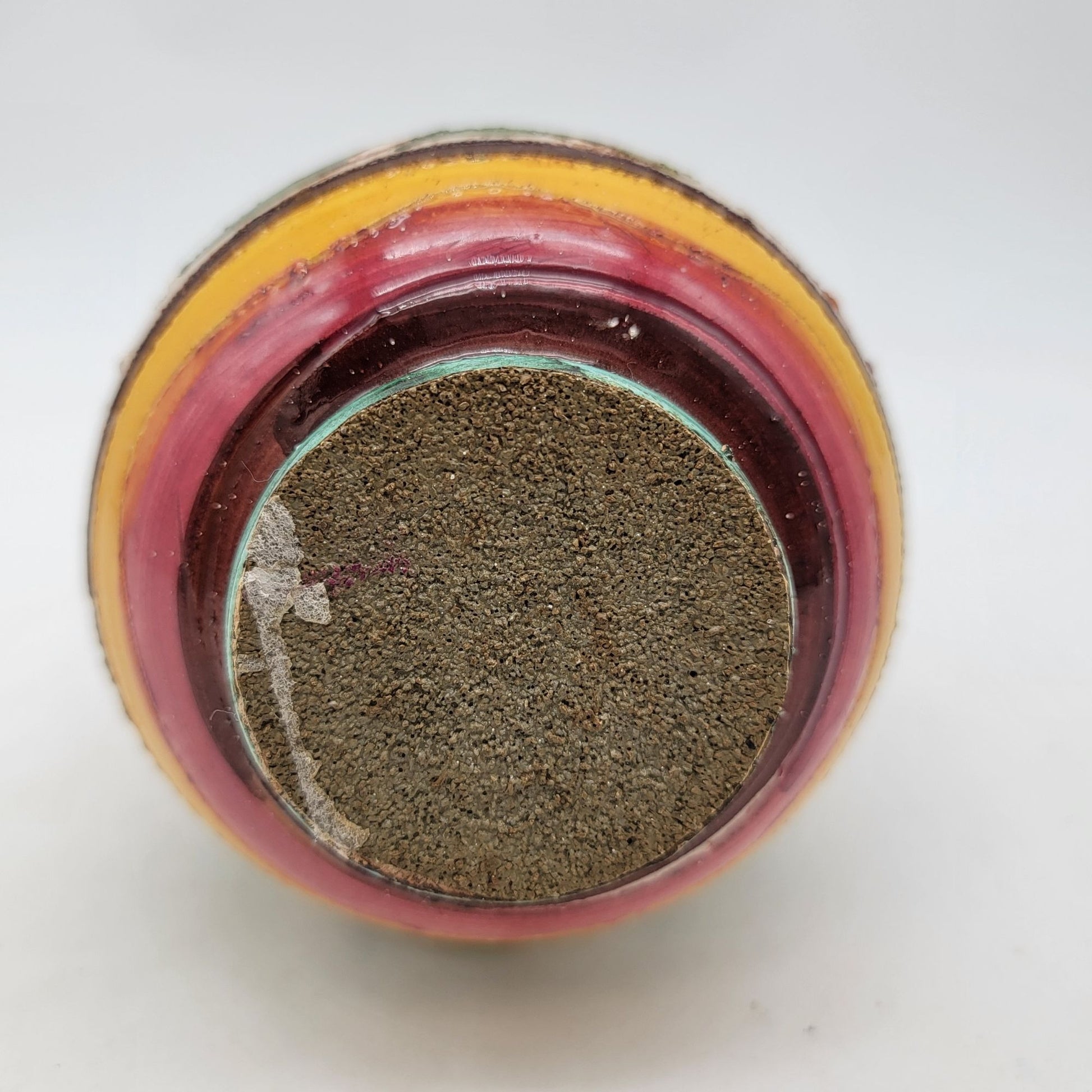 This charming vintage art pottery vase exudes a nostalgic beauty with its hand-painted floral design. The vibrant colors and intricate details showcase skilled craftsmanship from a bygone era, making it a charming addition to any collection or home decor.