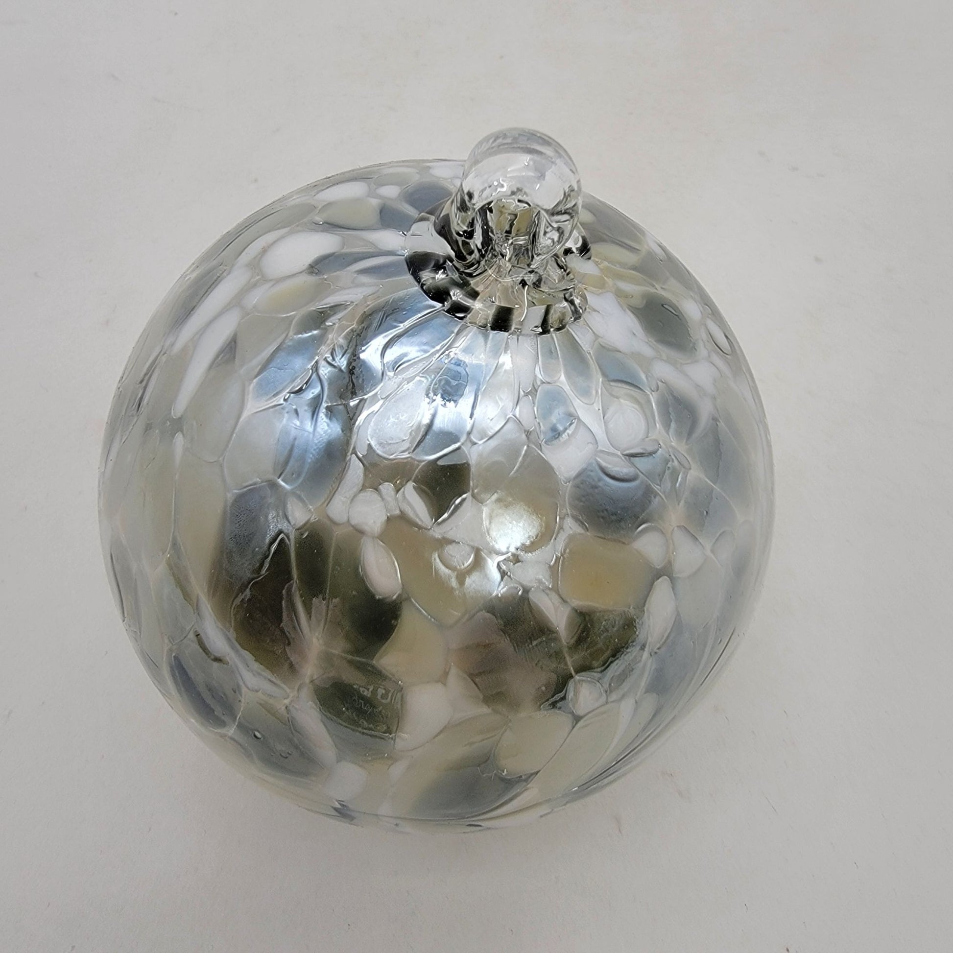 Handcrafted Anwas Art Glass Ornament Grey & Silver Speckled Design
