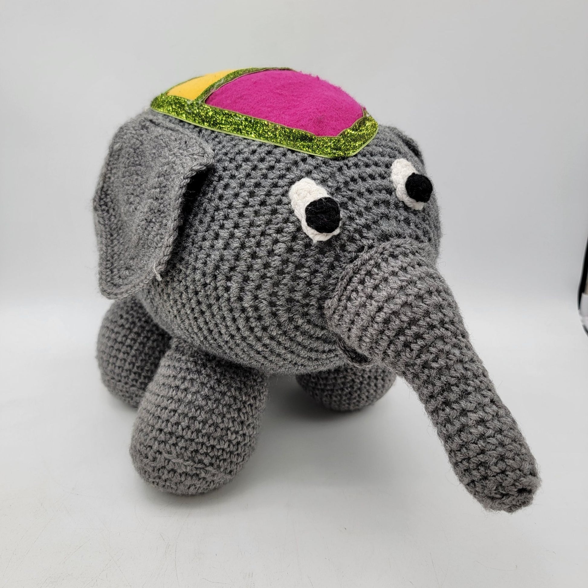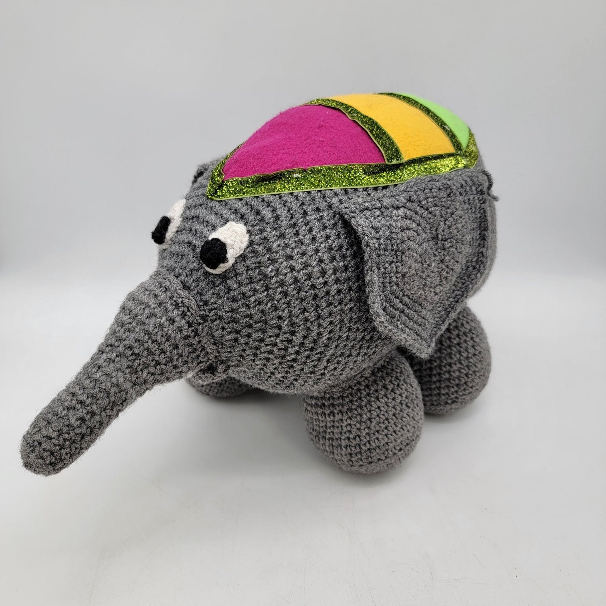 This crocheted elephant is not just another pretty trunk. Handcrafted with love, it boasts a sparkly multicolor blanket that screams, "I'm fabulous!"