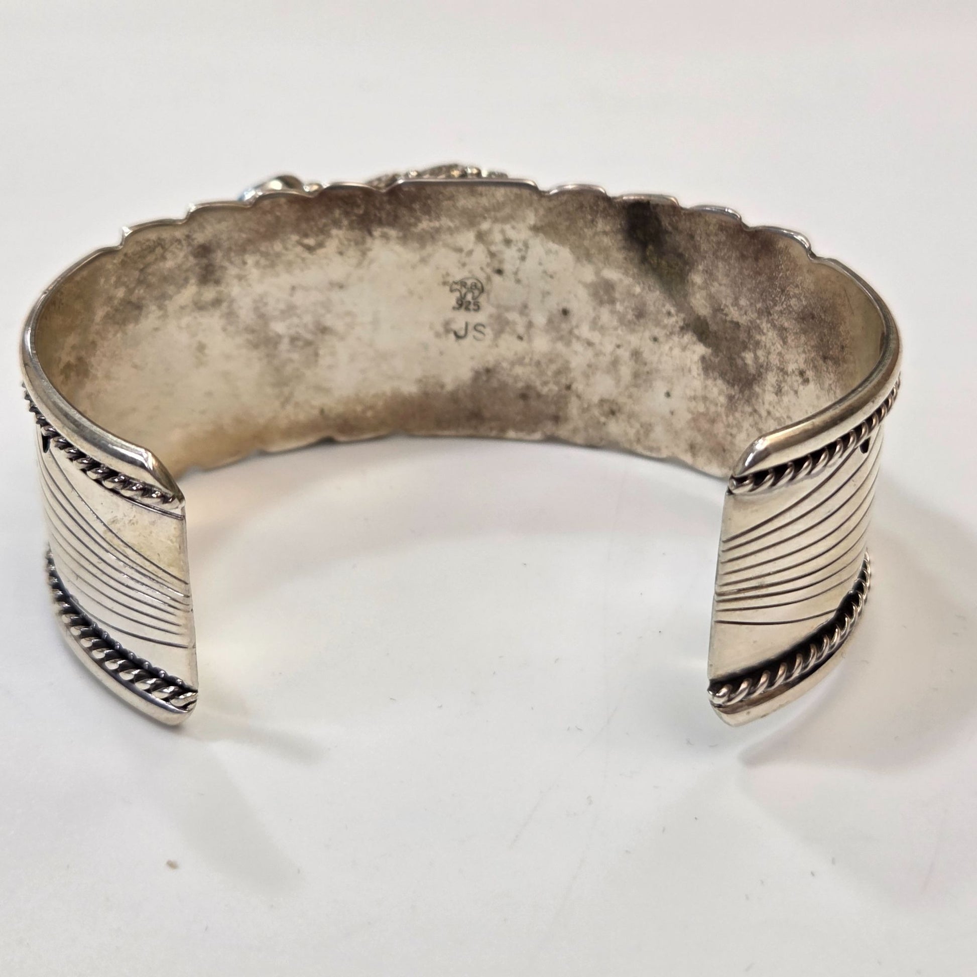 James Shay Running Bear Sterling Silver Navajo Cuff Bracelet Turquoise & Tigers Eye Gemstone
