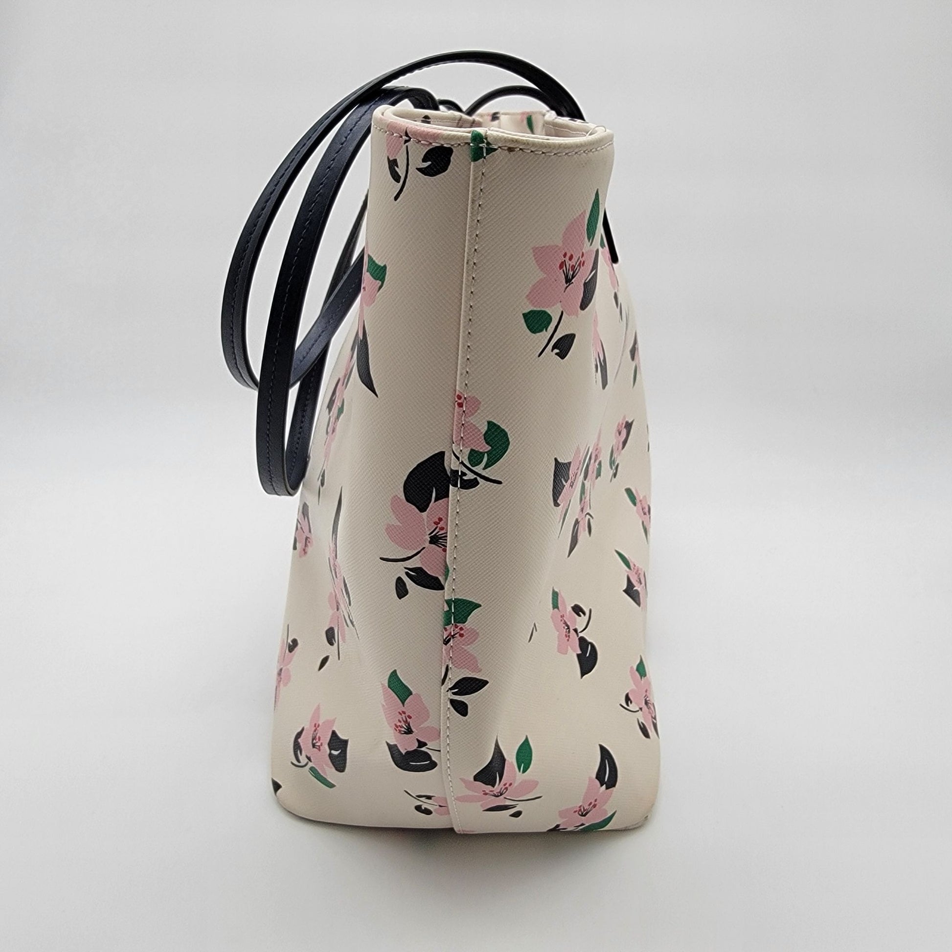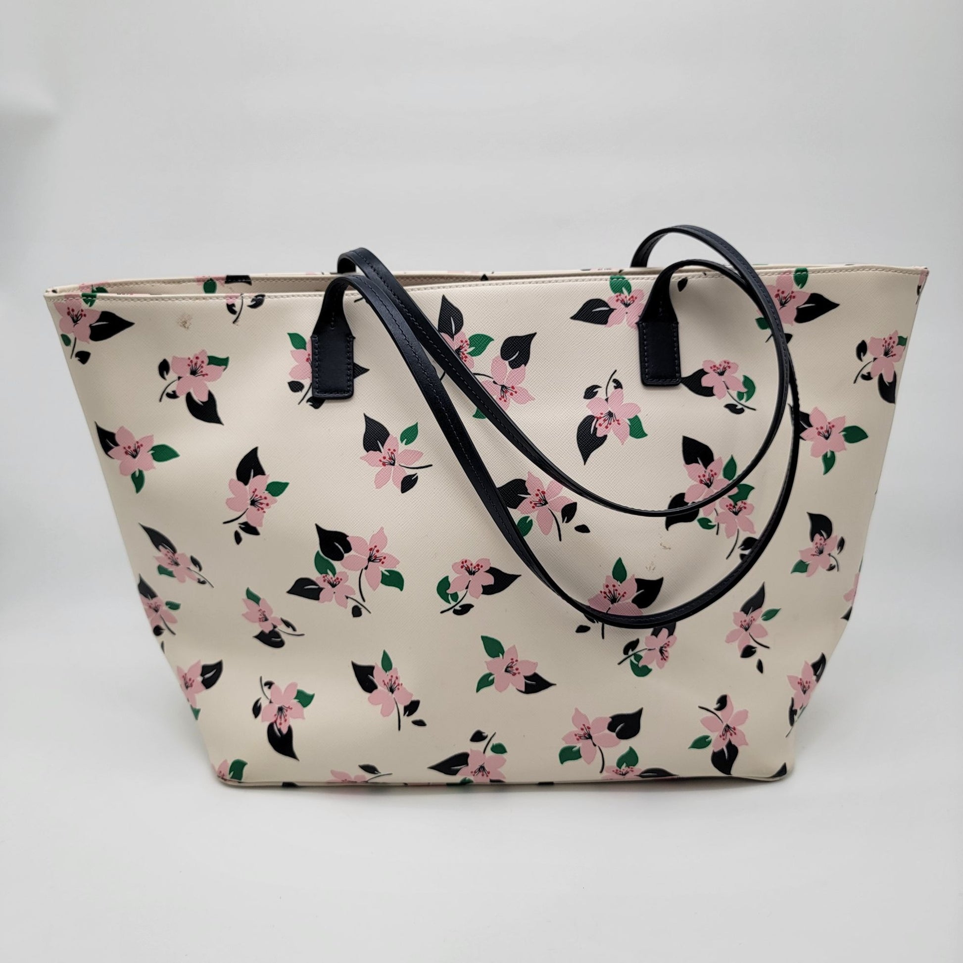 This spacious Kate Spade tote features a beautiful floral print on durable saffiano leather, complete with an open-top design and comfortable shoulder straps.