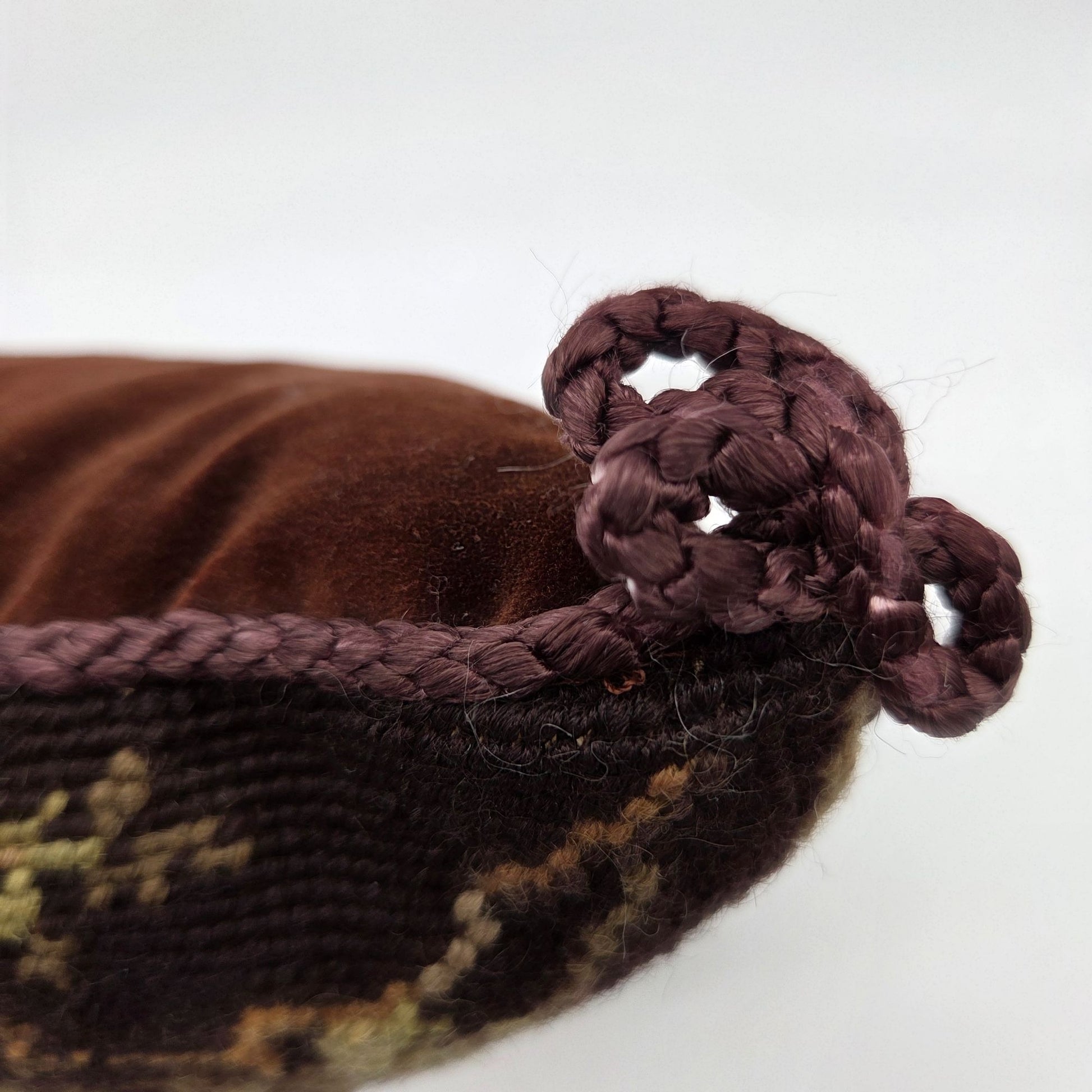 This antique-style petit point needlepoint pillow features a King Charles Spaniel dog design, crafted with fine detail. Limited edition with a luxurious velvet back.