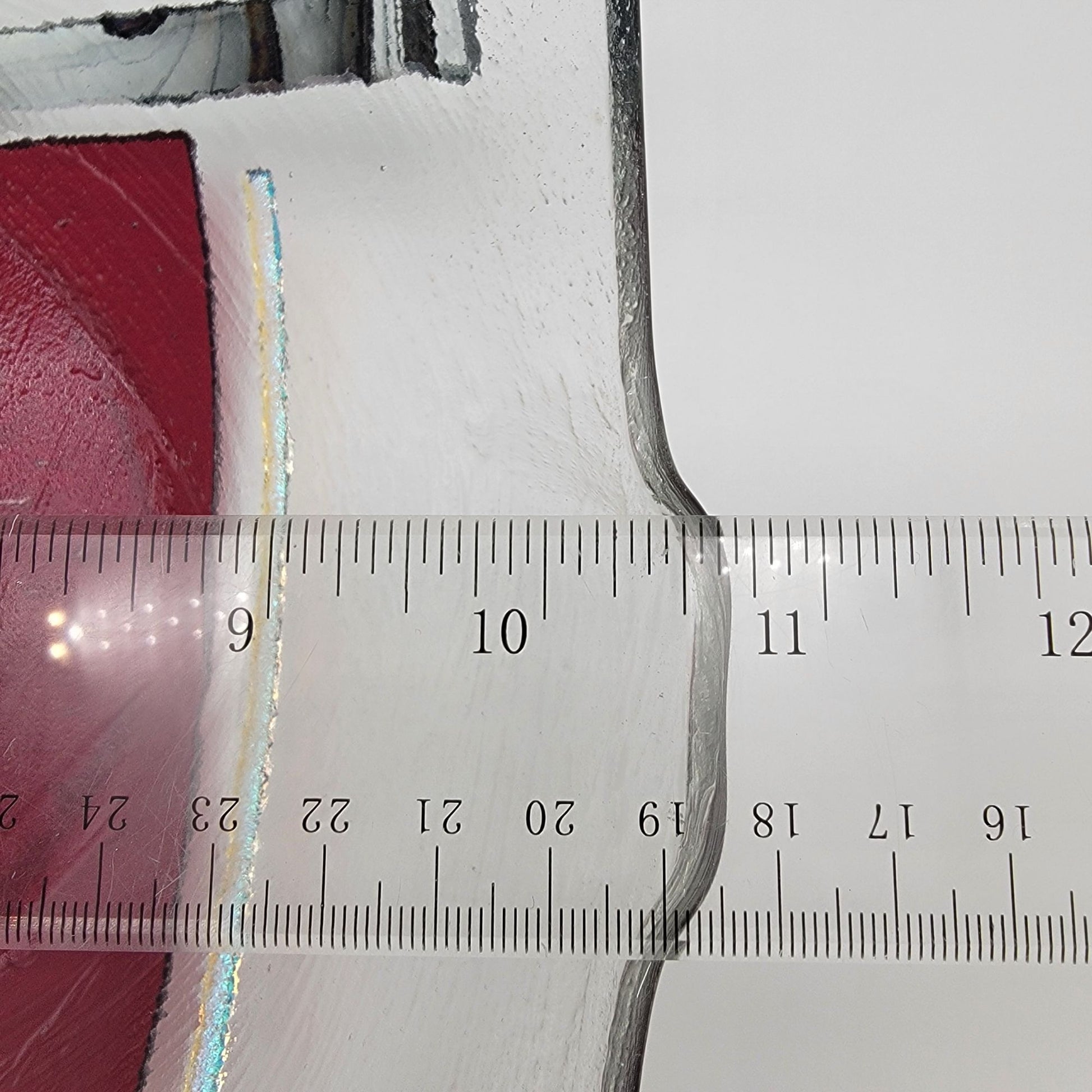 • Unique abstract red and clear patterns