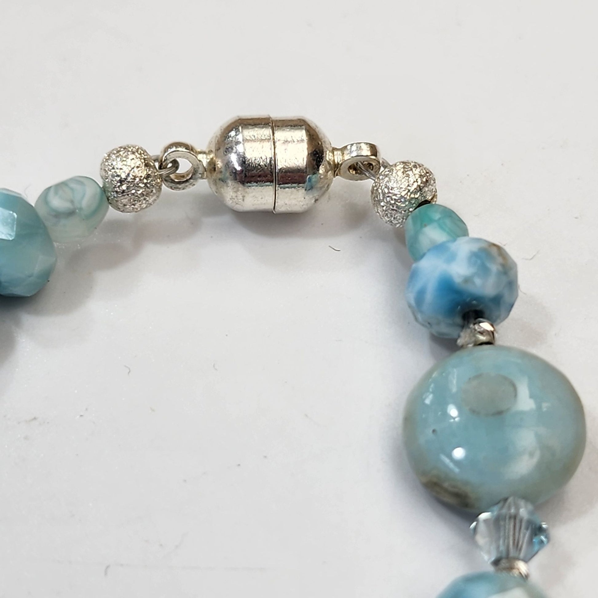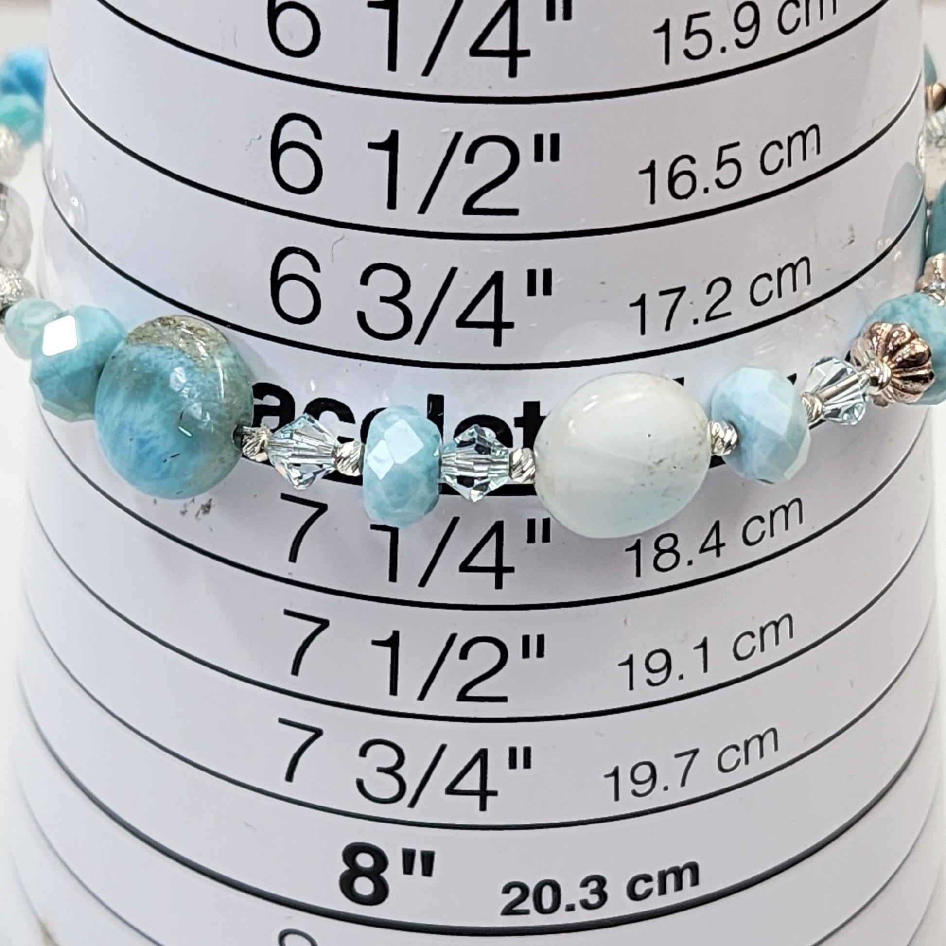 Larimar Gemstone Crystal & Glass Beaded Bracelet Size 7