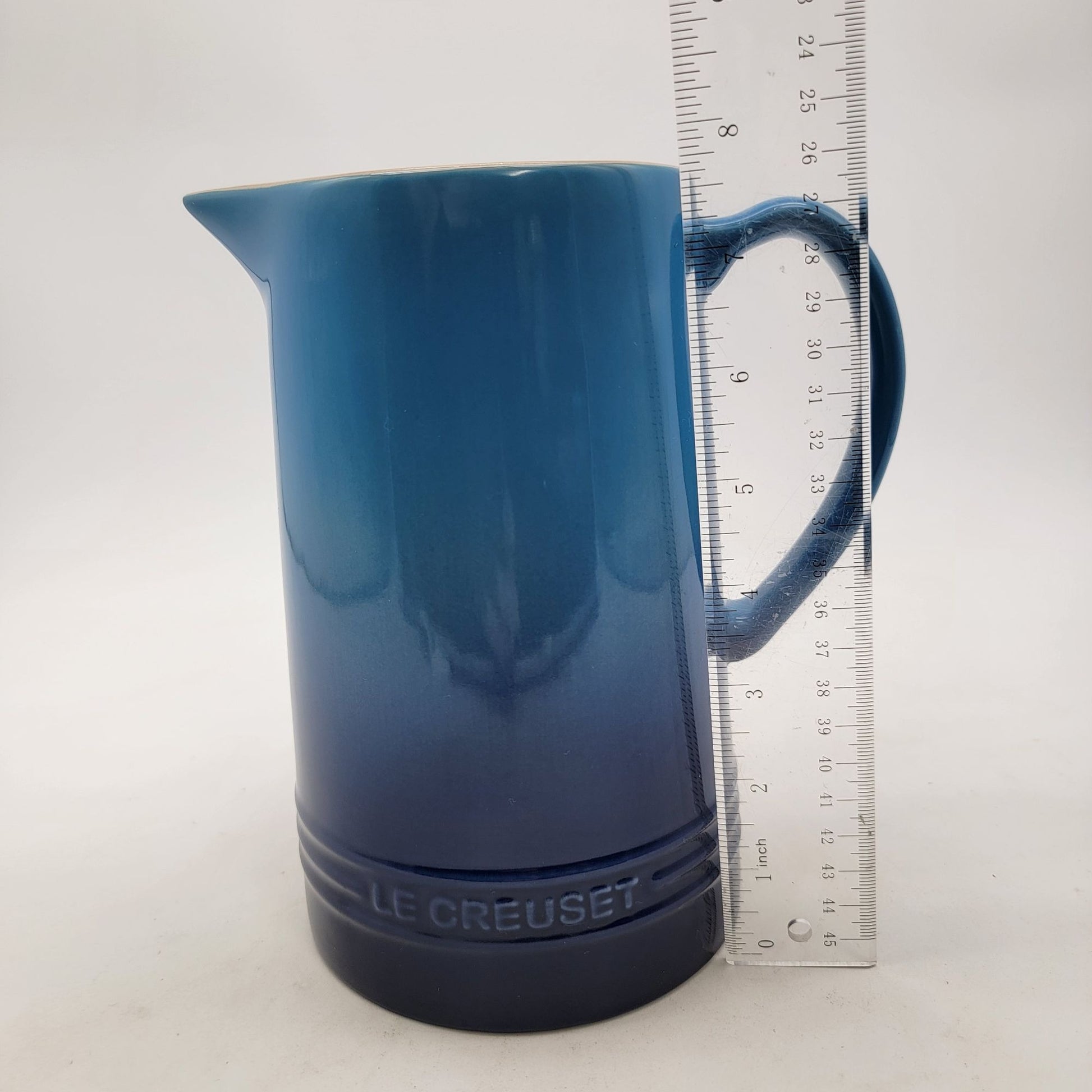 This elegant Le Creuset stoneware pitcher combines functionality with style, featuring a 1.5-liter capacity and a striking blue ombre design. Ideal for serving beverages, it adds a sophisticated touch to any dining setting. The durable construction ensures long-lasting use, making it a reliable addition to your kitchenware.
