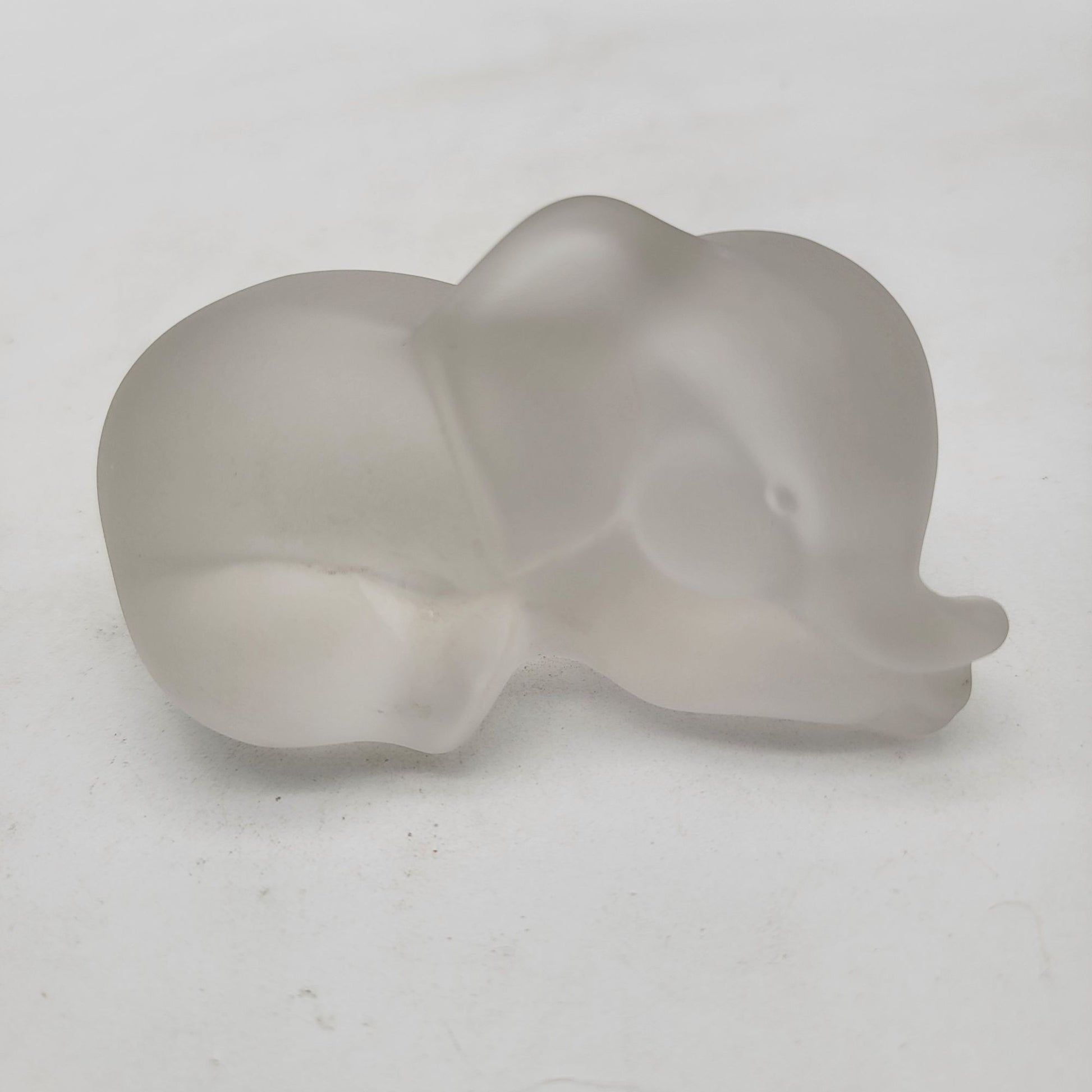 This exquisite Lenox frosted crystal elephant figurine captures the gentle grace and tranquility of the majestic animal in a serene, sleeping pose. Its smooth, frosted finish provides an ethereal quality, reminiscent of vintage crystal craftsmanship, making it an elegant decorative piece that evokes a sense of nostalgia and timeless beauty.