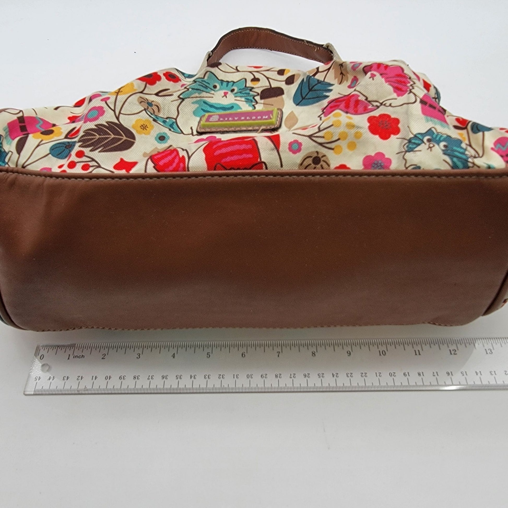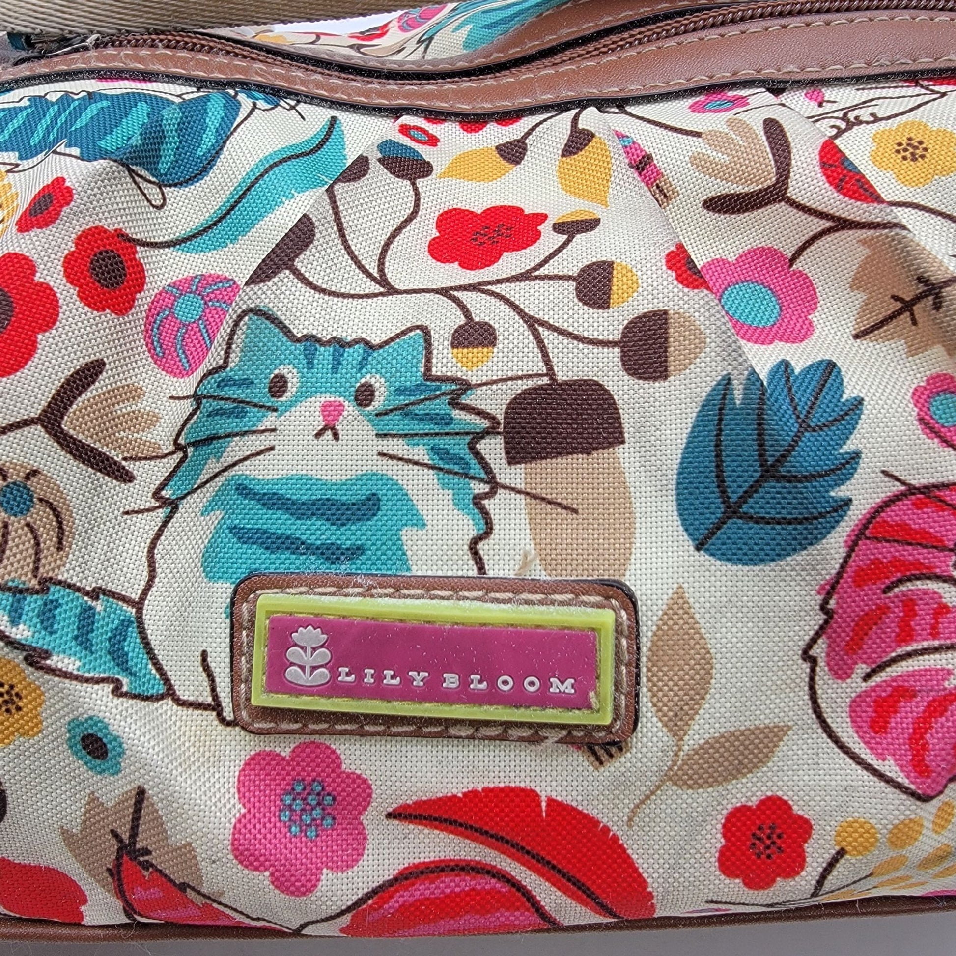 This Lily Bloom crossbody purse features a vibrant leaves and flowers design. Made with vegan leather, it offers practicality with a stylish flair.