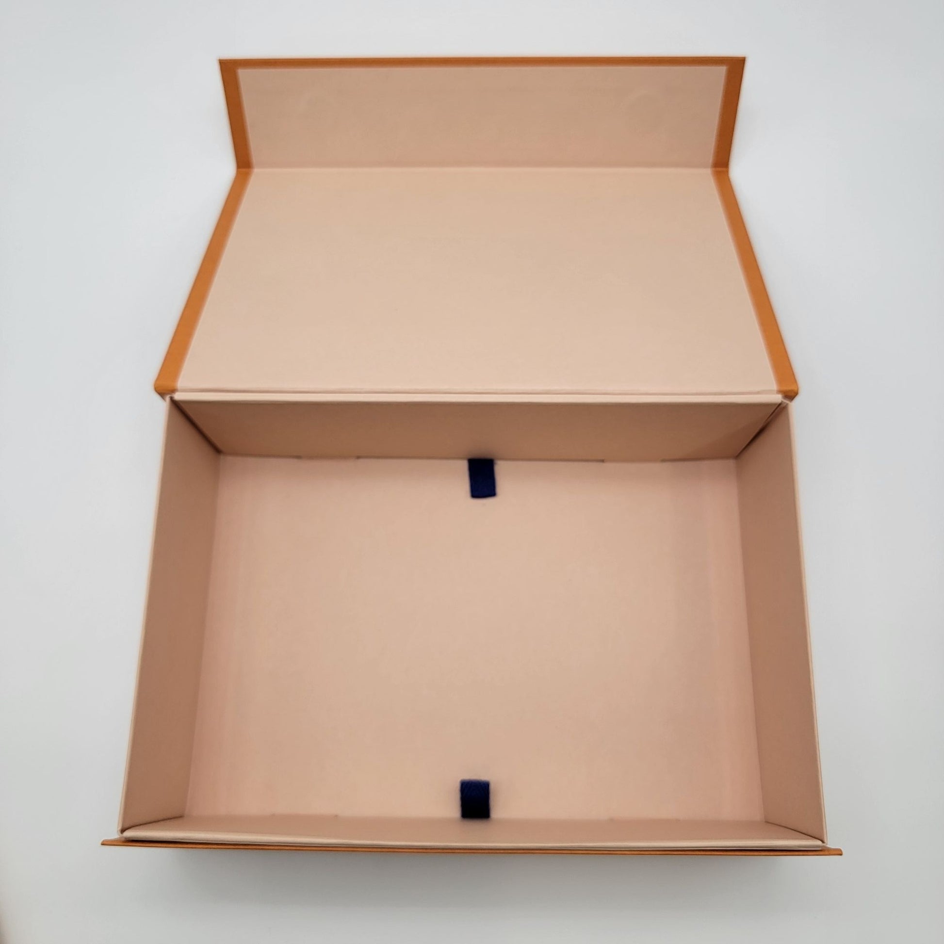 • Premium orange-toned rigid box construction