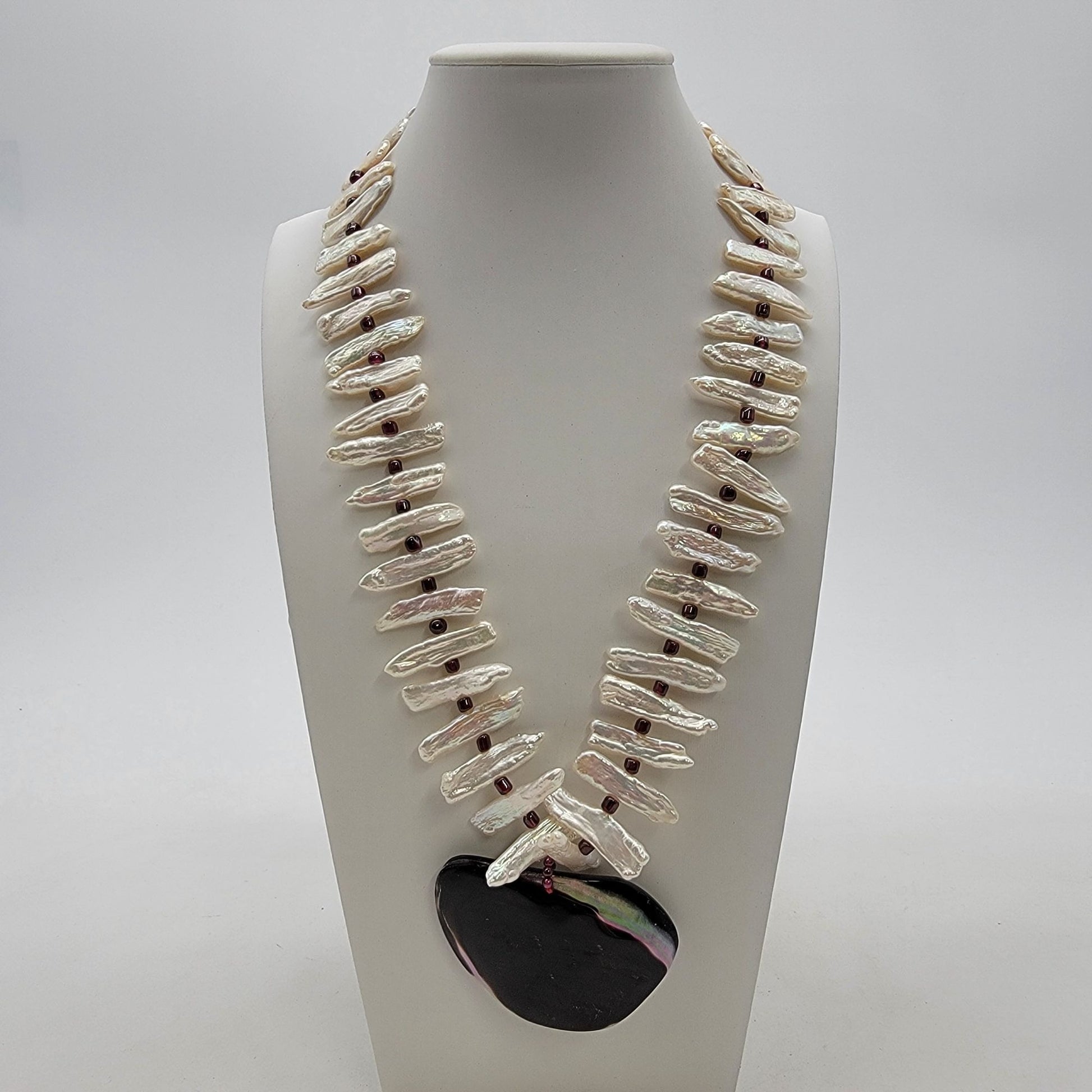 • Biwa baroque freshwater pearls & garnet accents