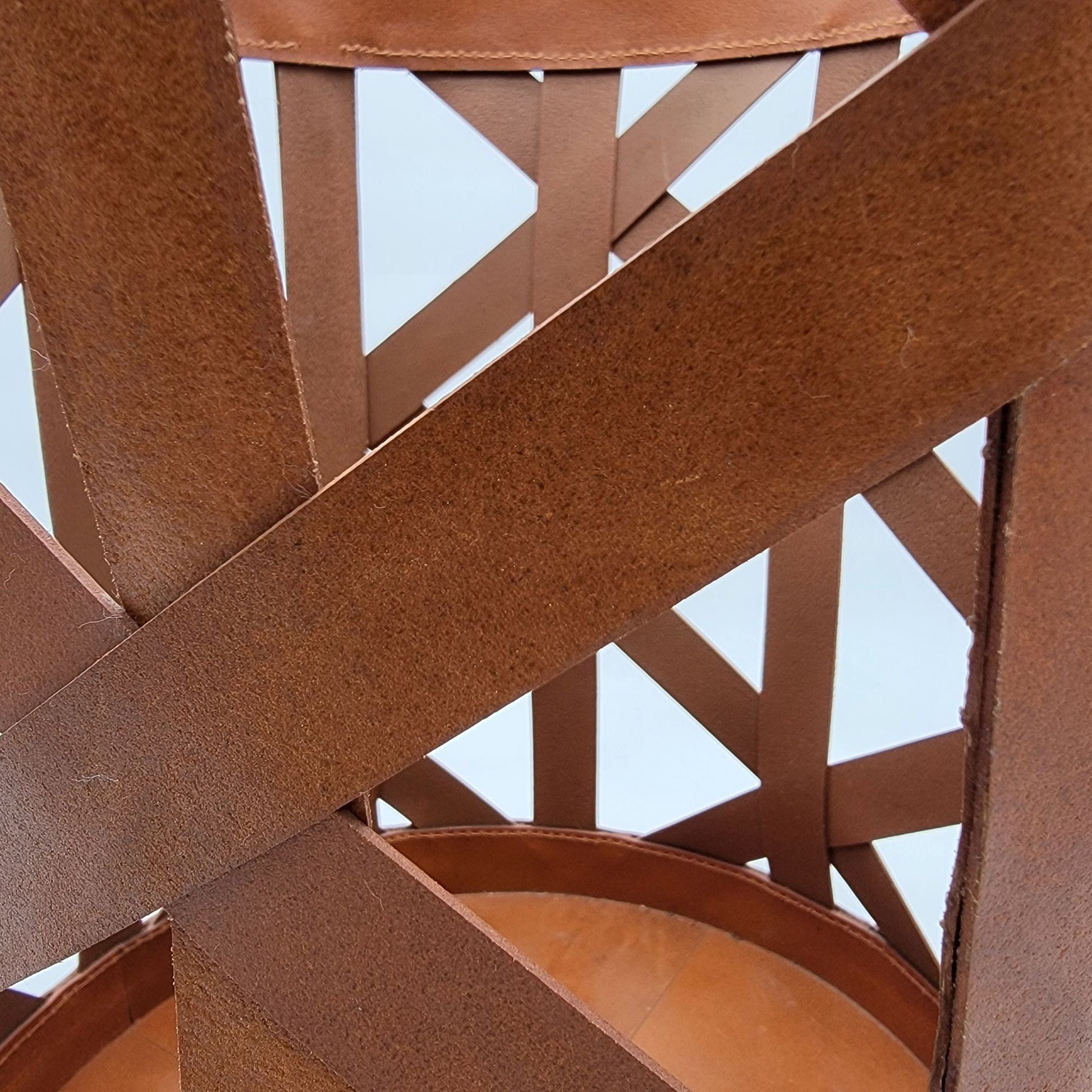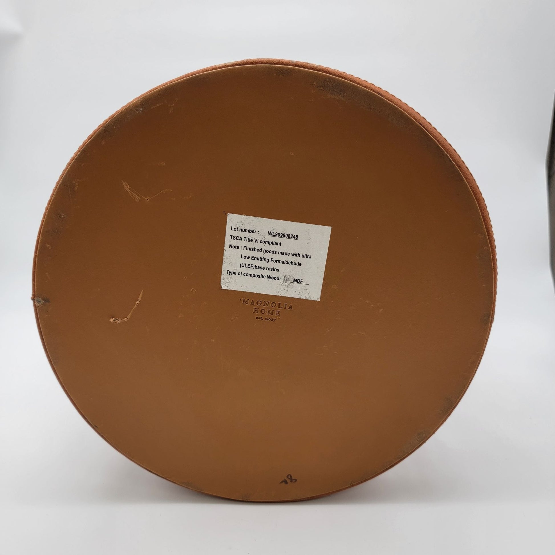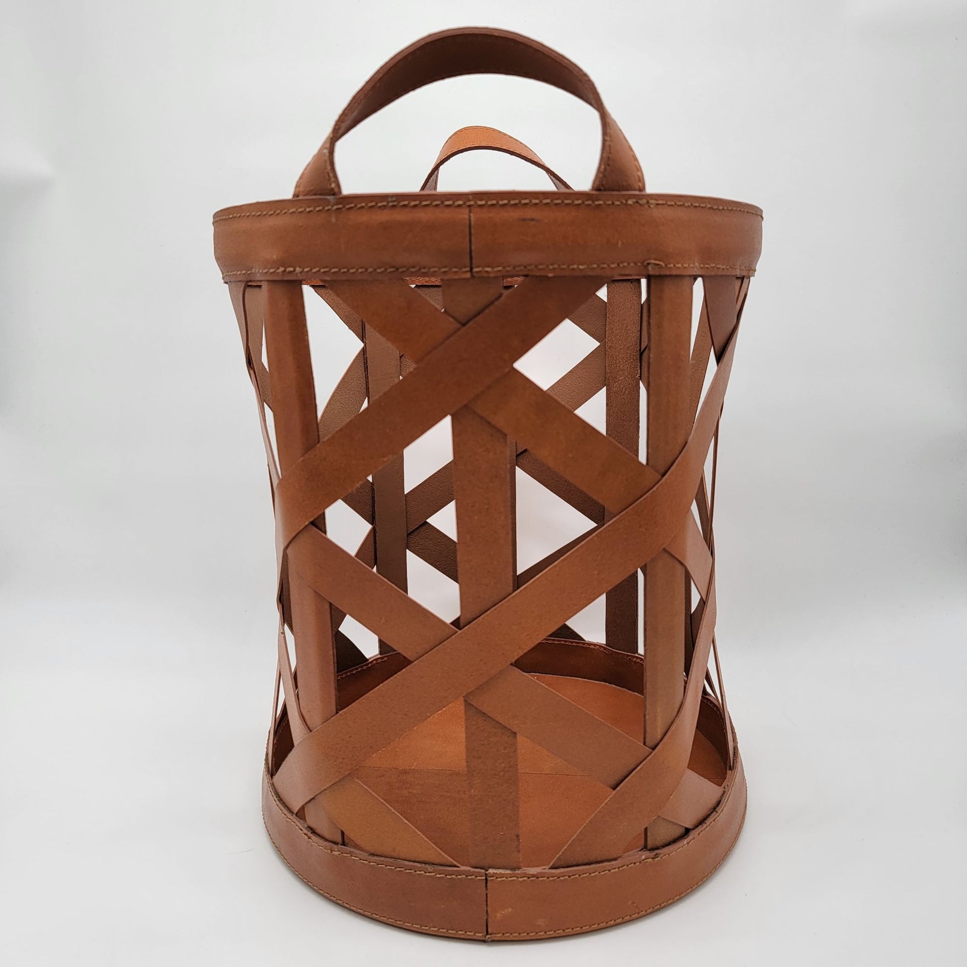 This basket weaves together rustic charm and modern elegance. Crafted with faux leather straps and a sturdy wood base, its open design adds visual interest while offering functional storage for throws, magazines, or essentials. A versatile piece fit for any décor style.
