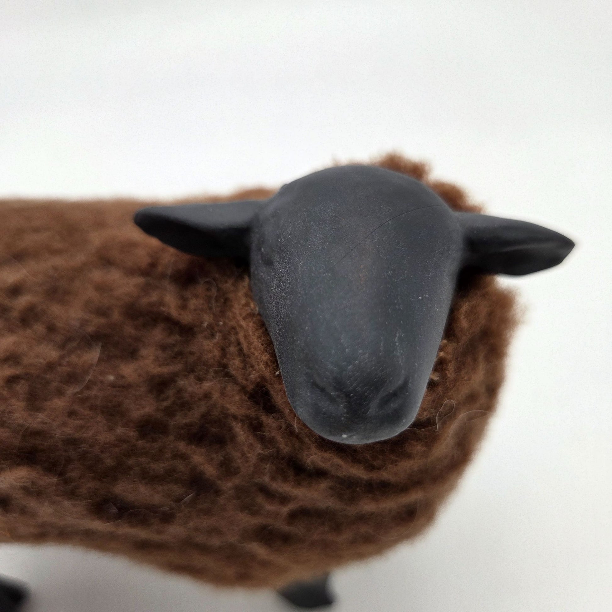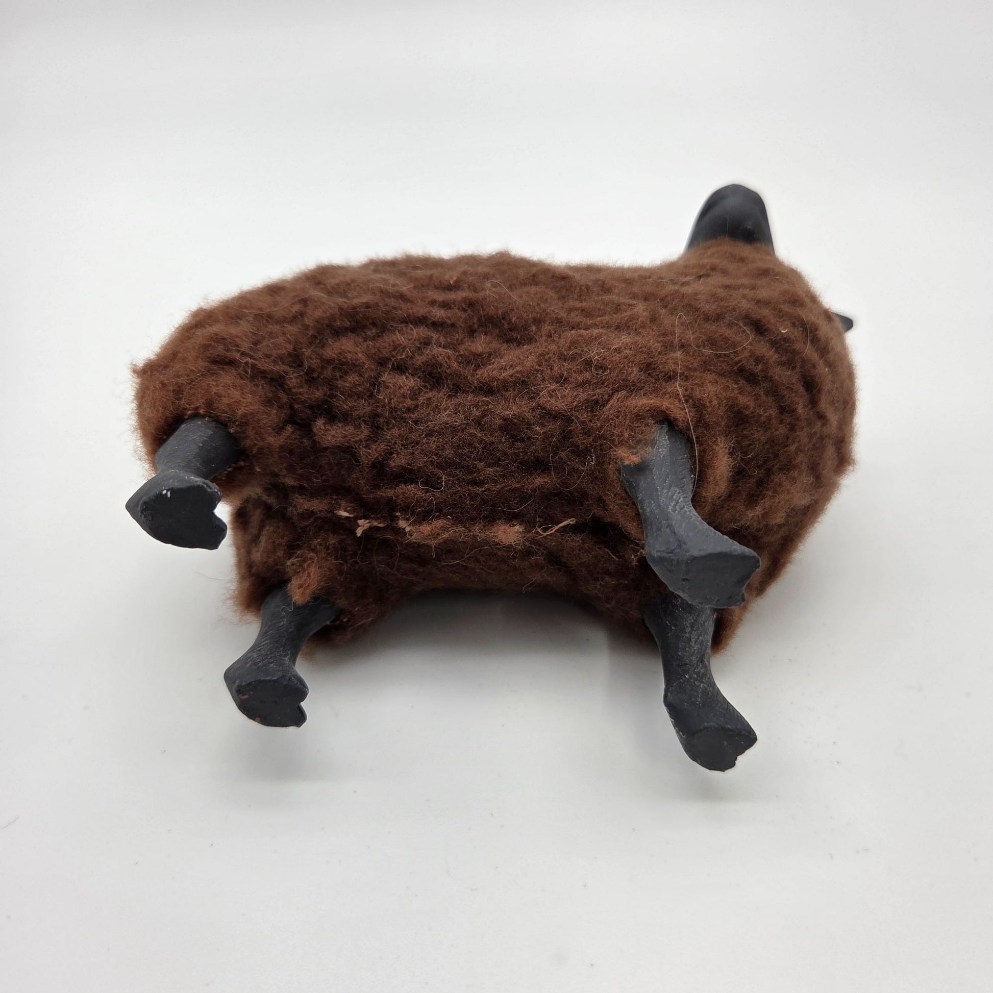 This vintage Meier Germany Suffolk sheep sculpture features real wool and a handcrafted design. A charming collectible for farmhouse decor or antique enthusiasts.
