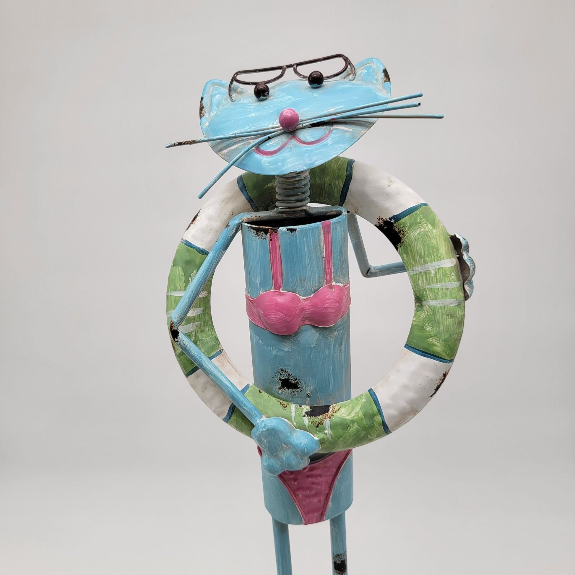 Metal Folk Art Whimsical Cat in Bikini Yard Statue