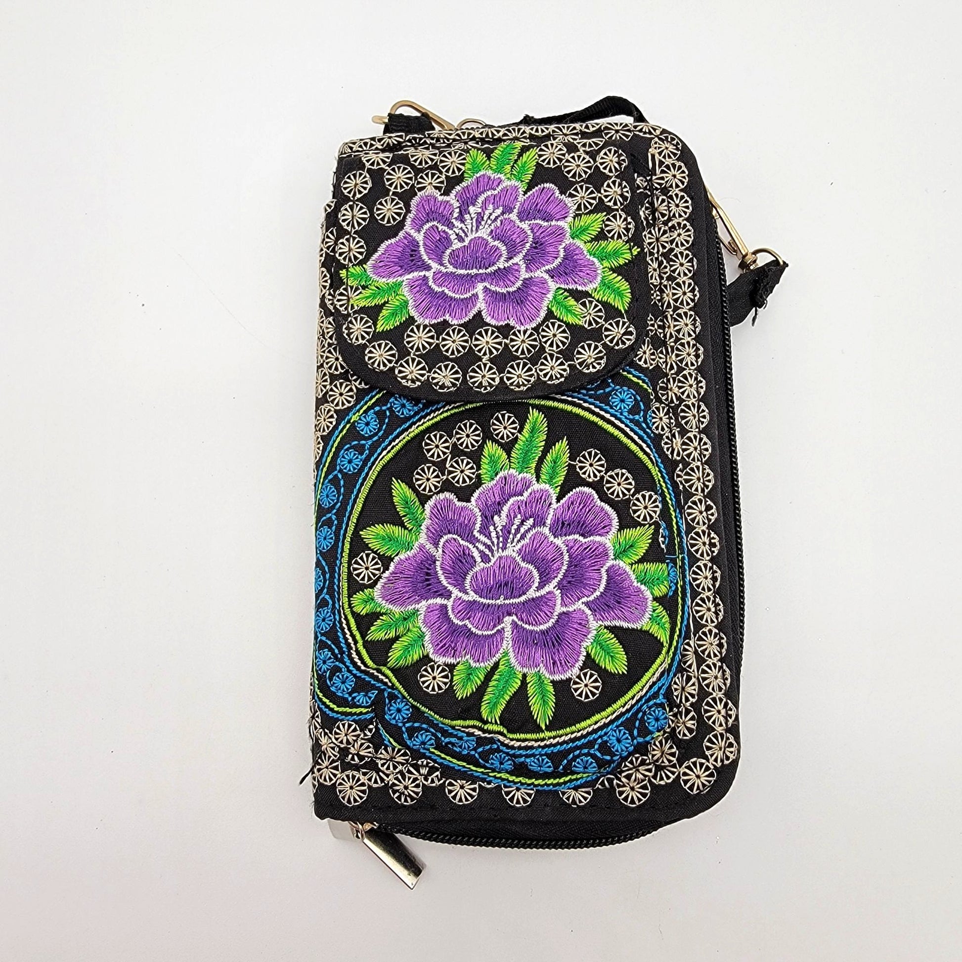 Mexican Embroidered Phone Wallet Crossbody Clutch