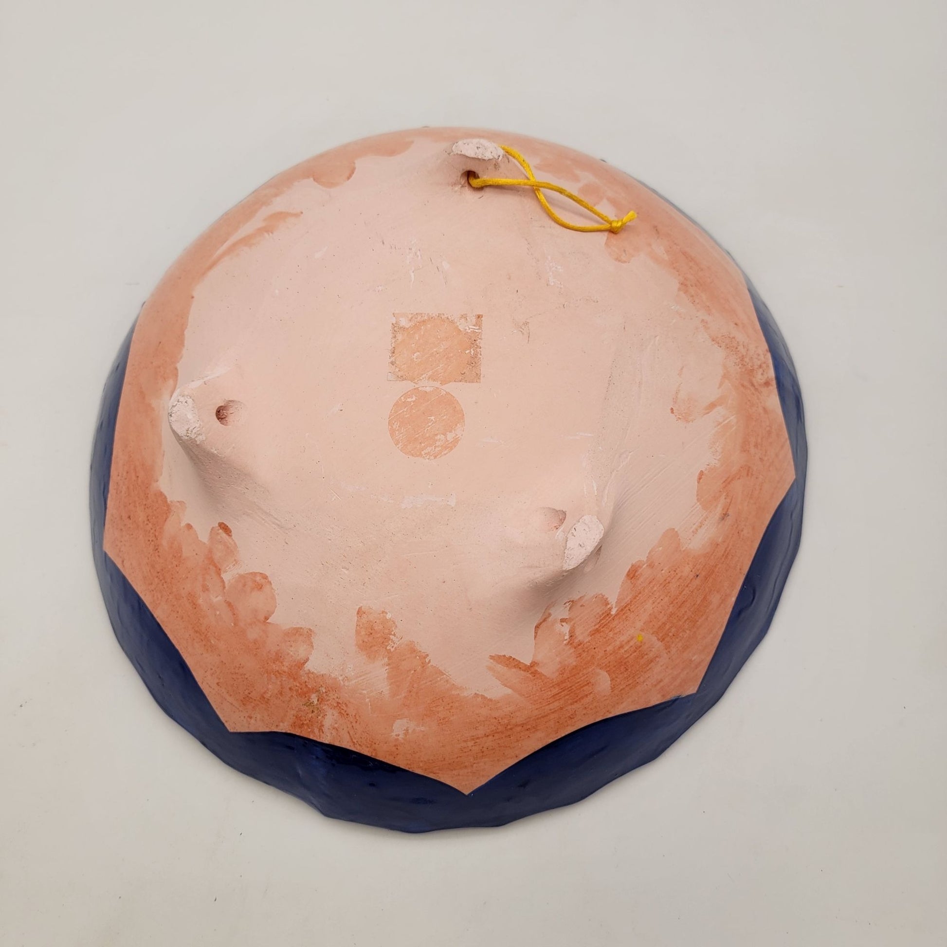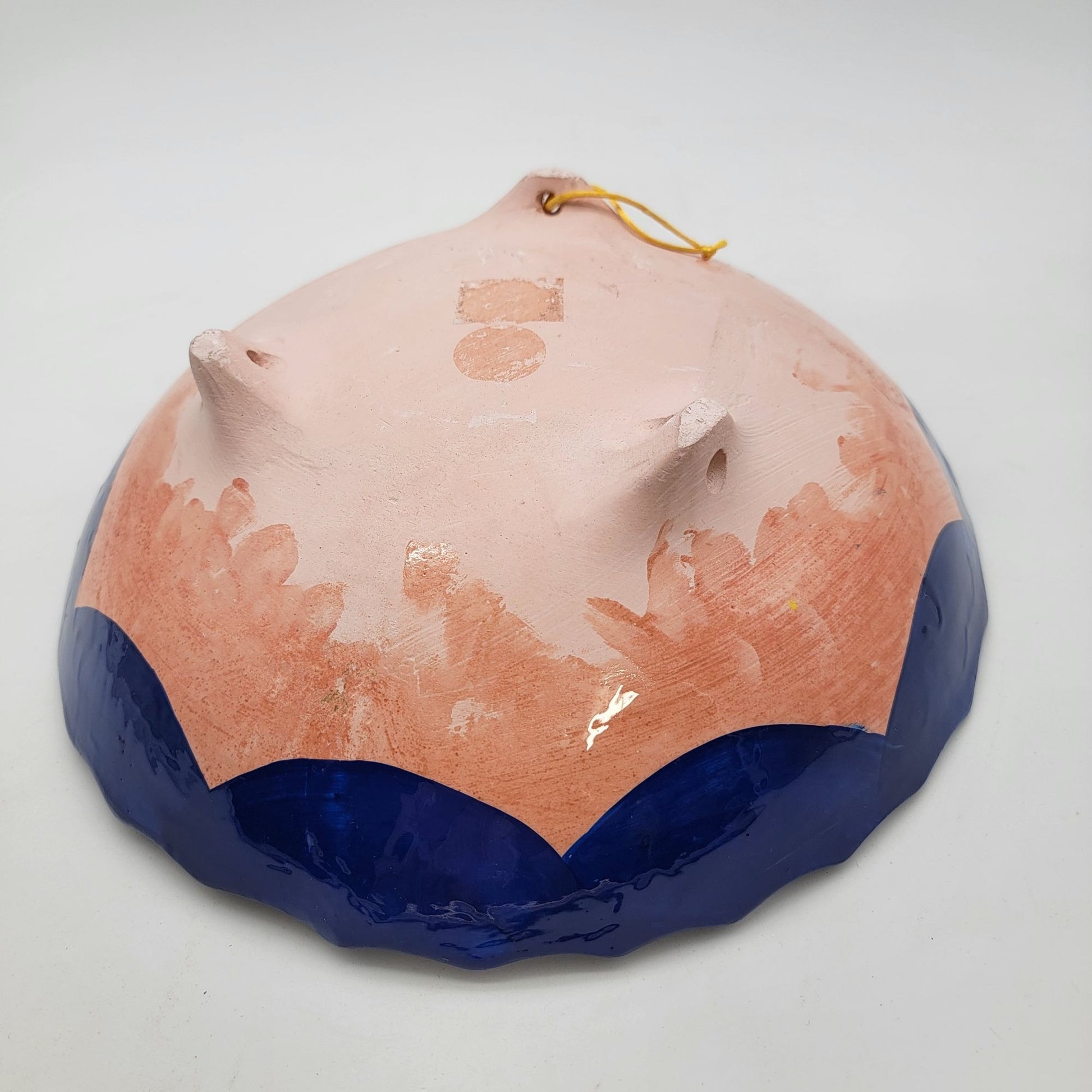This vintage Mexican pottery bowl showcases a stunning blue and white floral design, harmonizing traditional craftsmanship with functional appeal. The bowl's versatility allows it to serve both as a decorative wall hanging and a practical serving piece, reflecting the artistry and cultural heritage of Mexican pottery.