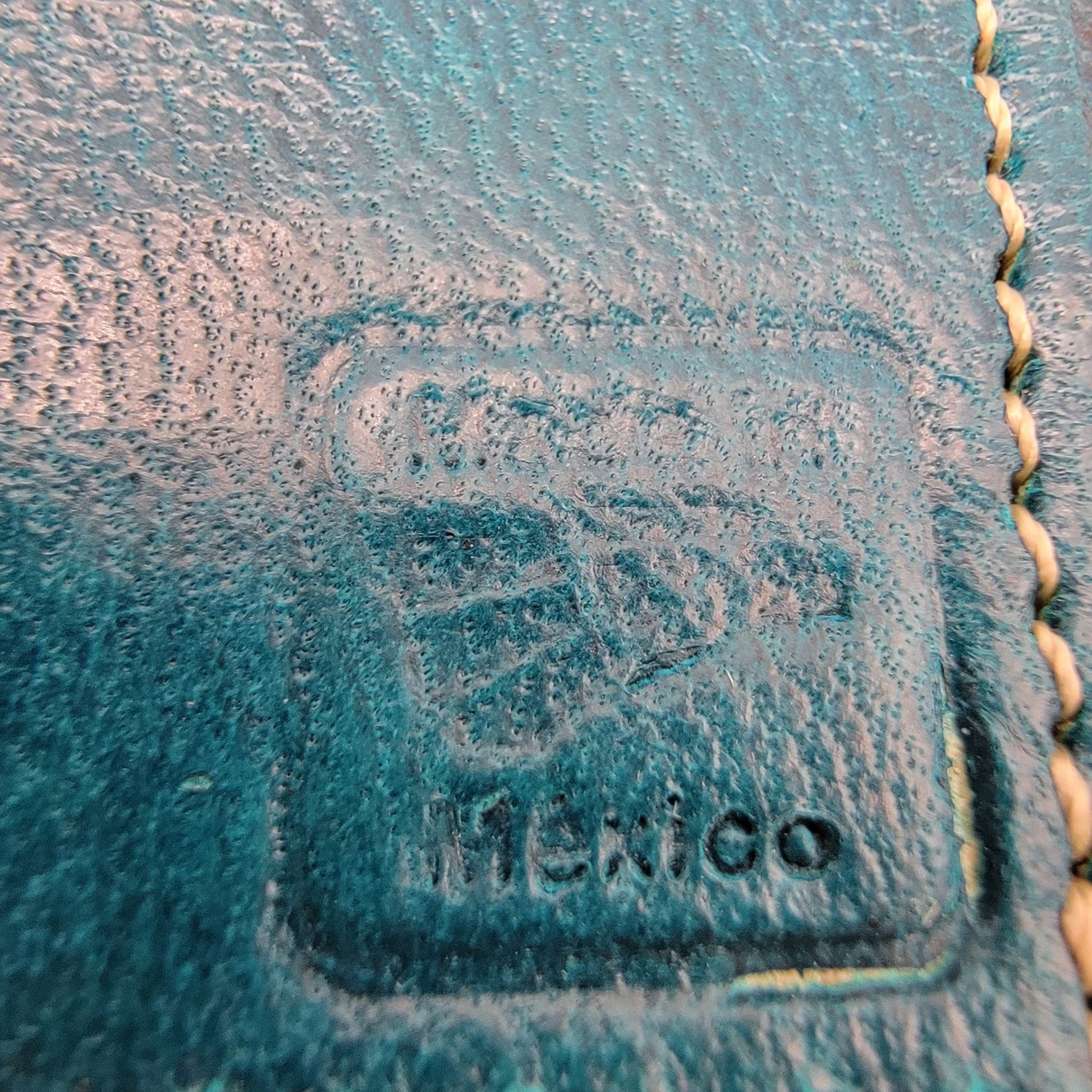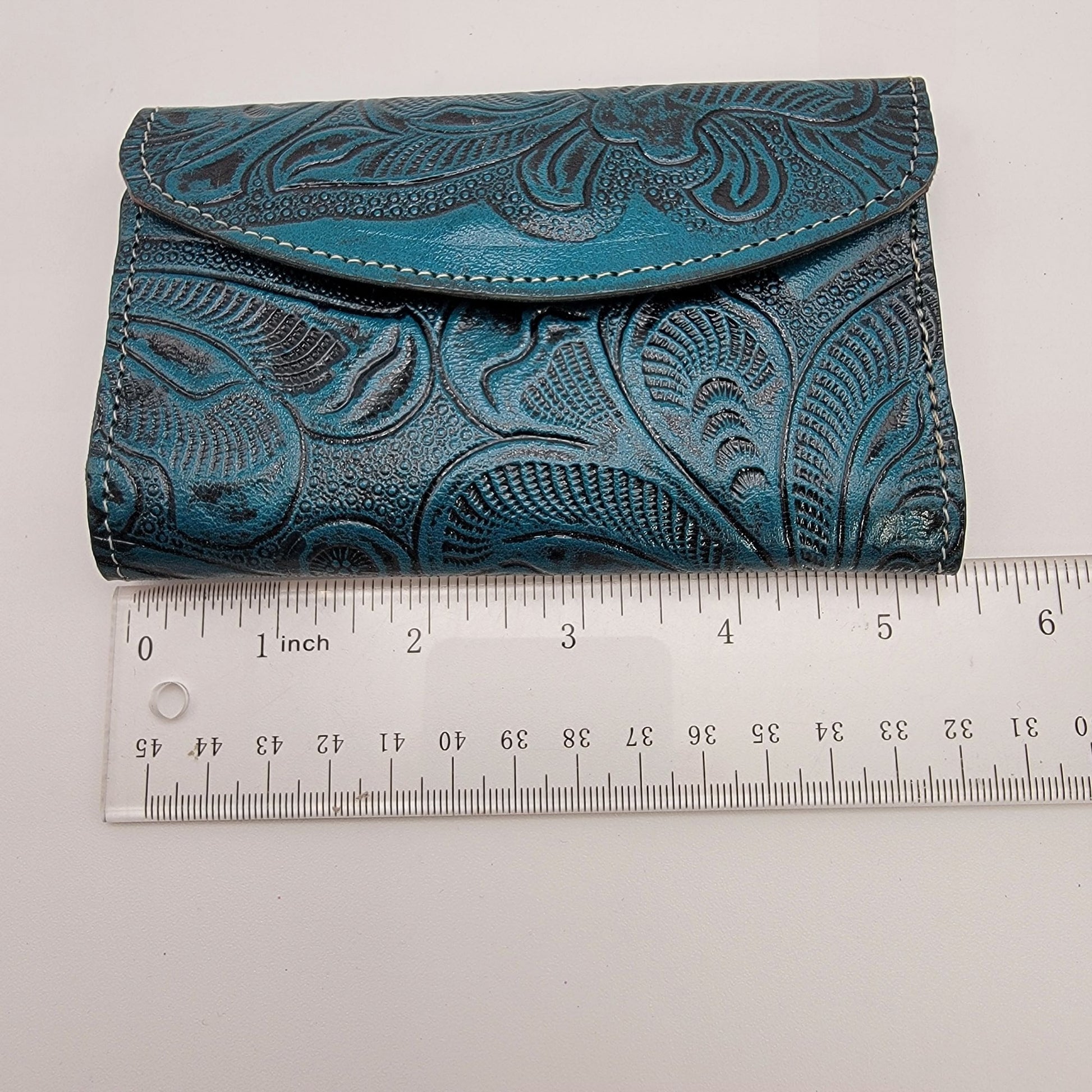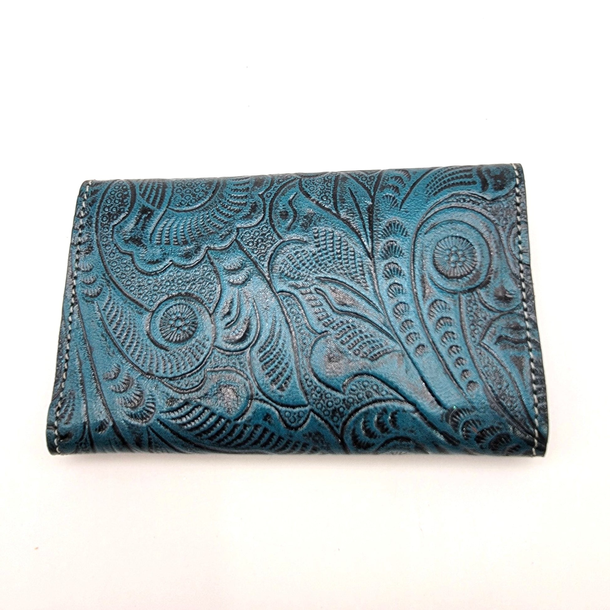 Mexican Tooled Blue Leather Tri-Fold Wallet