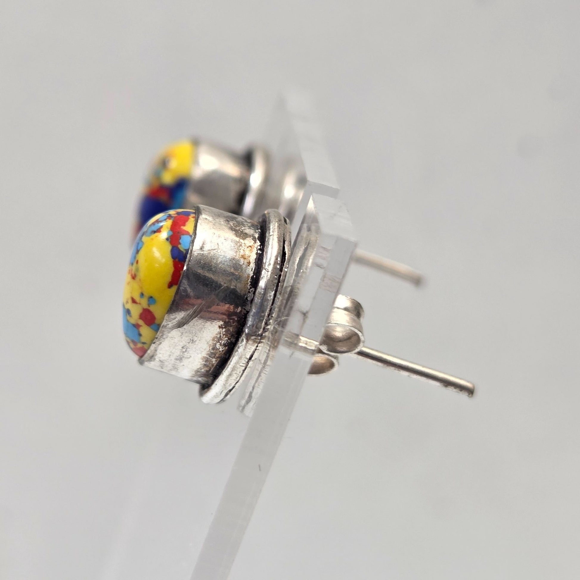 These earrings tell a story of artistry, with vibrant mosaic jasper gemstones set in sterling silver. A treasure that captures colors of creativity.