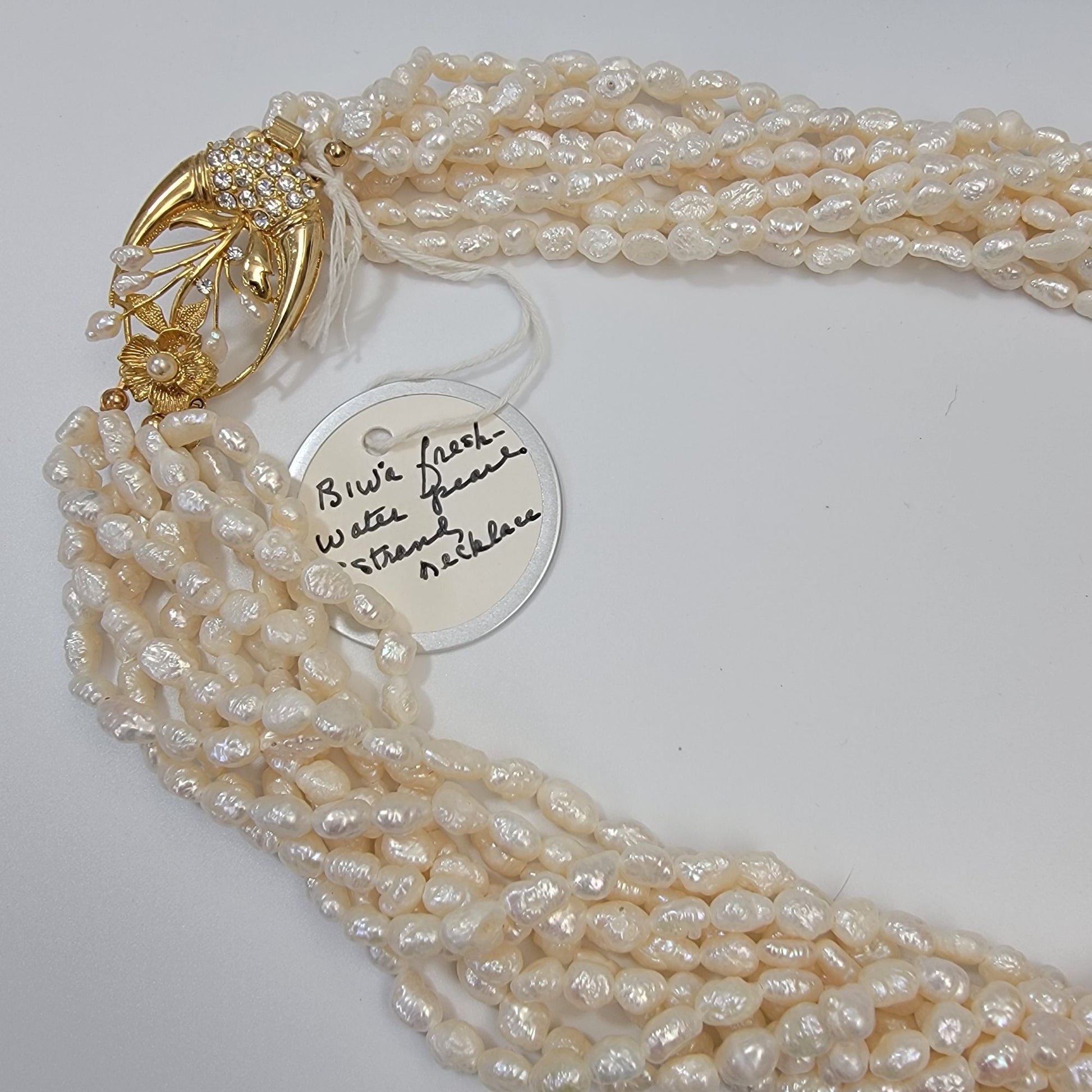 • Features multi-strand Biwa freshwater pearls