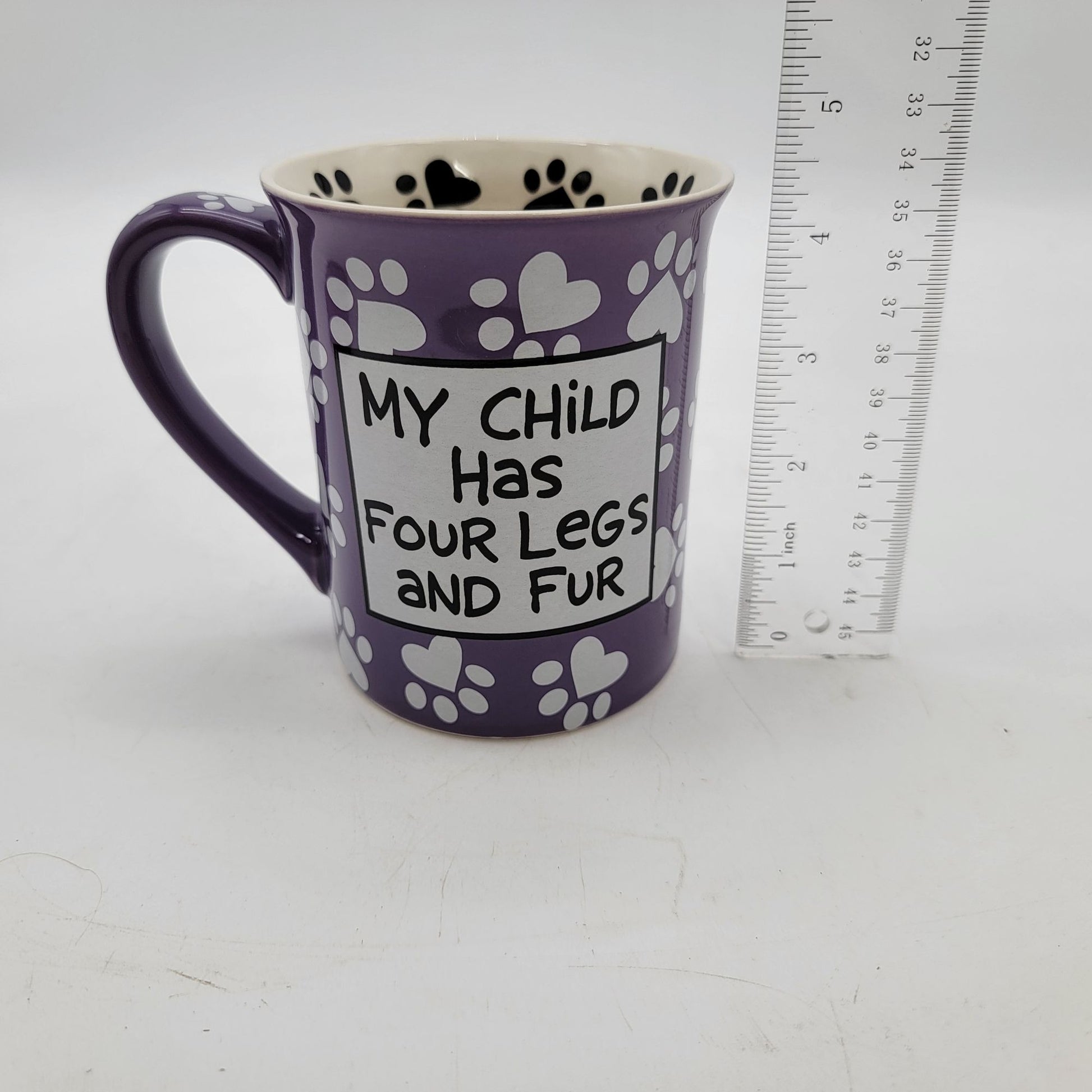 My Child Has Four Legs & Fur Purple Dog Mom Mug By Our Name Is Mud With Paw Print & Heart Design