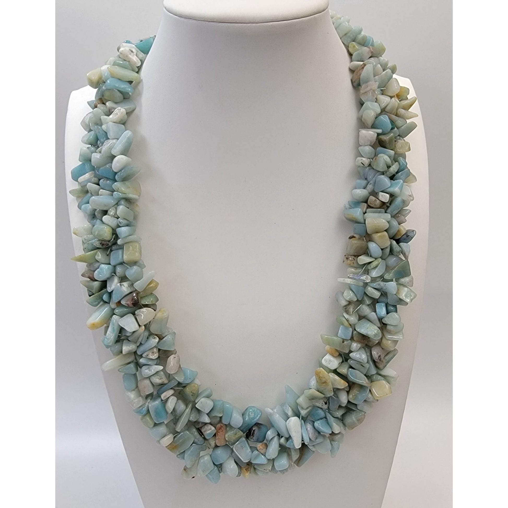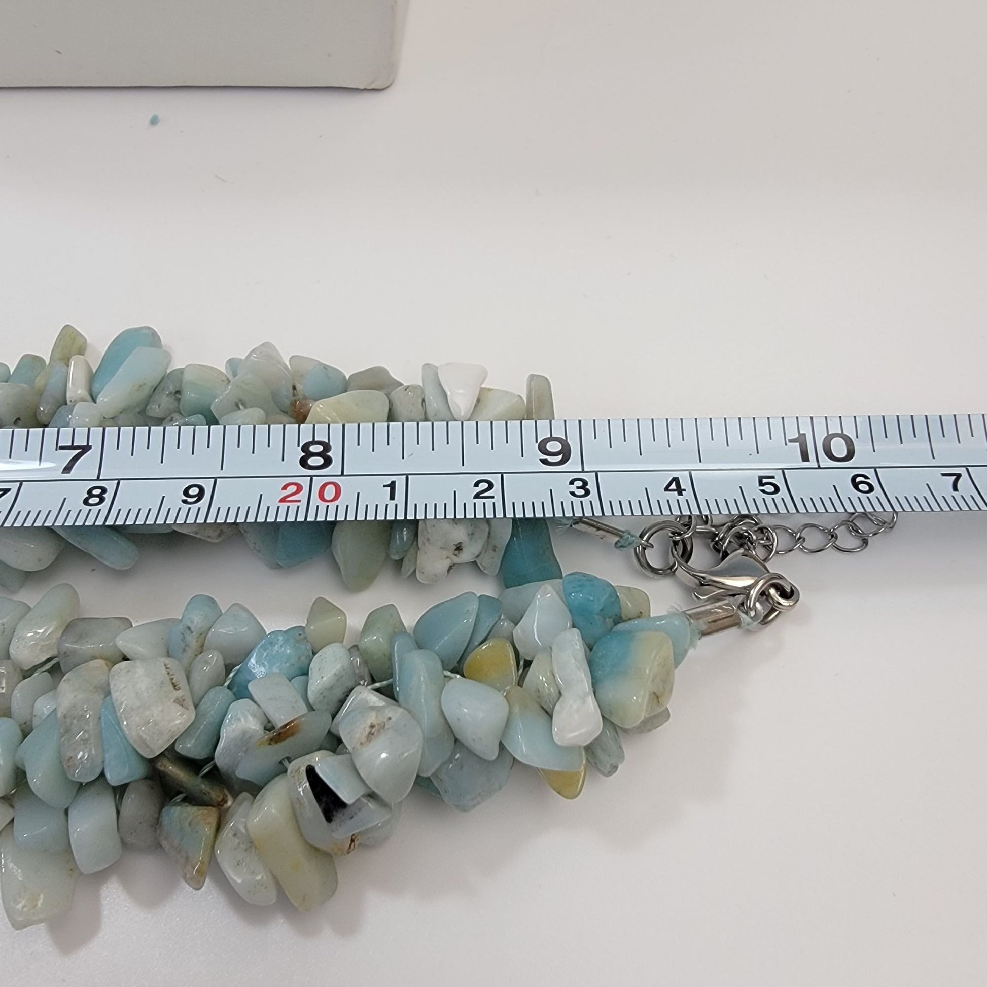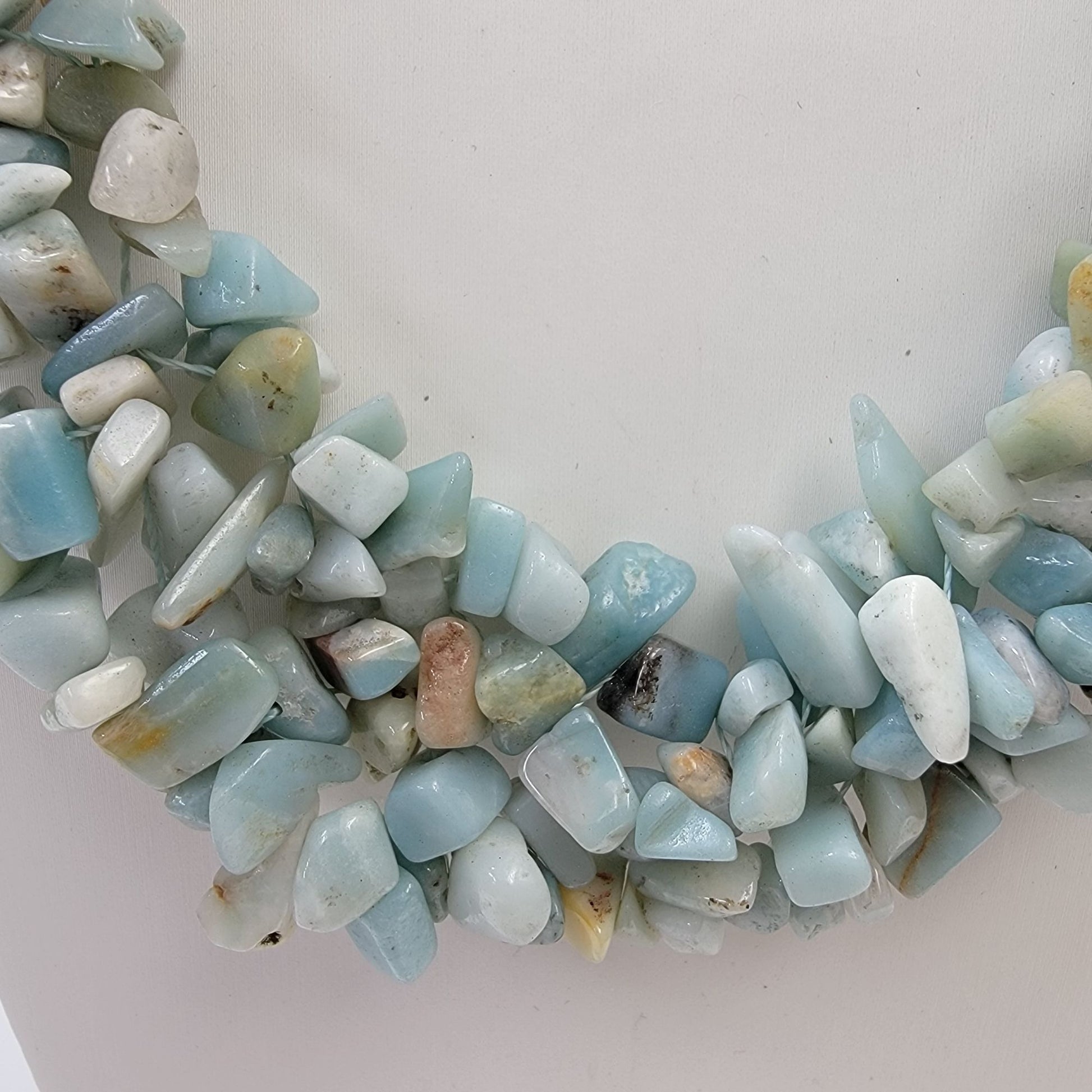 Natural Amazonite Gemstone Chip Multi-Strand Statement Necklace